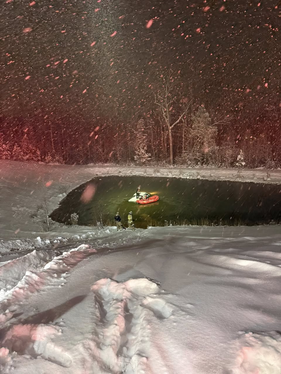 According to the Charlotte Fire Department, the call came in at approximately 7:35 p.m. Callers reported that a pickup truck had lost control, left the roadway, and entered a nearby retention pond. Witnesses advised that the driver managed to exit the cab as the vehicle began taking on water and was standing in the bed of the truck.