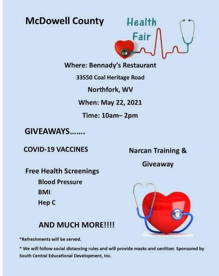MCDOWELL COUNTY, WV (LOOTPRESS)– McDowell County will be hosting a health fair in Northfork, WV on May 22nd.