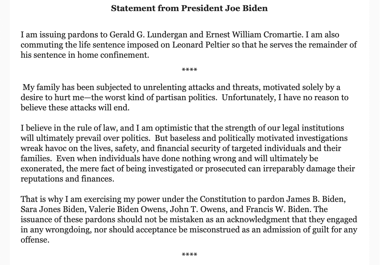 (LOOTPRESS) – In a striking last-minute decision, President Joe Biden announced a series of pardons for several members of his family just minutes before his term officially came to an end. The announcement included pardons for his brother James Biden, sister-in-law Sara Biden, sister Valerie Biden Owens, brother-in-law John T. Owens, and brother Francis Biden.