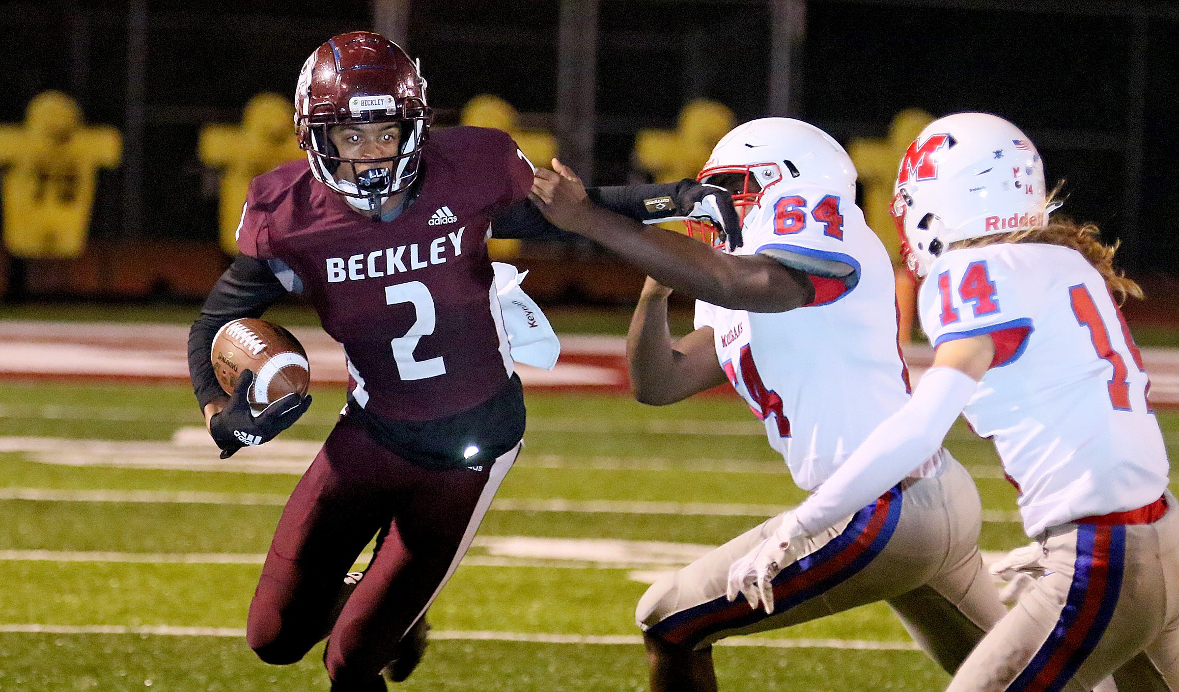 Perhaps the most impressive part of the performance was that the offense was tailored away from Cook’s strengths for most of the evening. After an interception on Beckley’s first drive, Beckley coach Street Sarrett elected to dust off the wing-T playbook and kept the ball on the ground for most of the game.