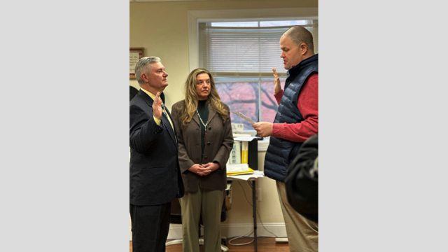 Newly appointed Sheriff Miller was sworn into office this morning by County Clerk Jeremy Meadows.