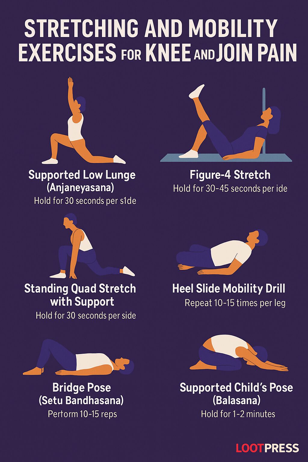 - Warm up with light movement (walking, cycling) before stretching.