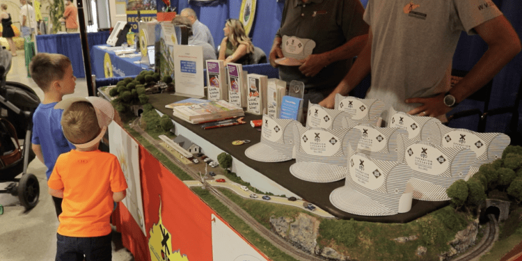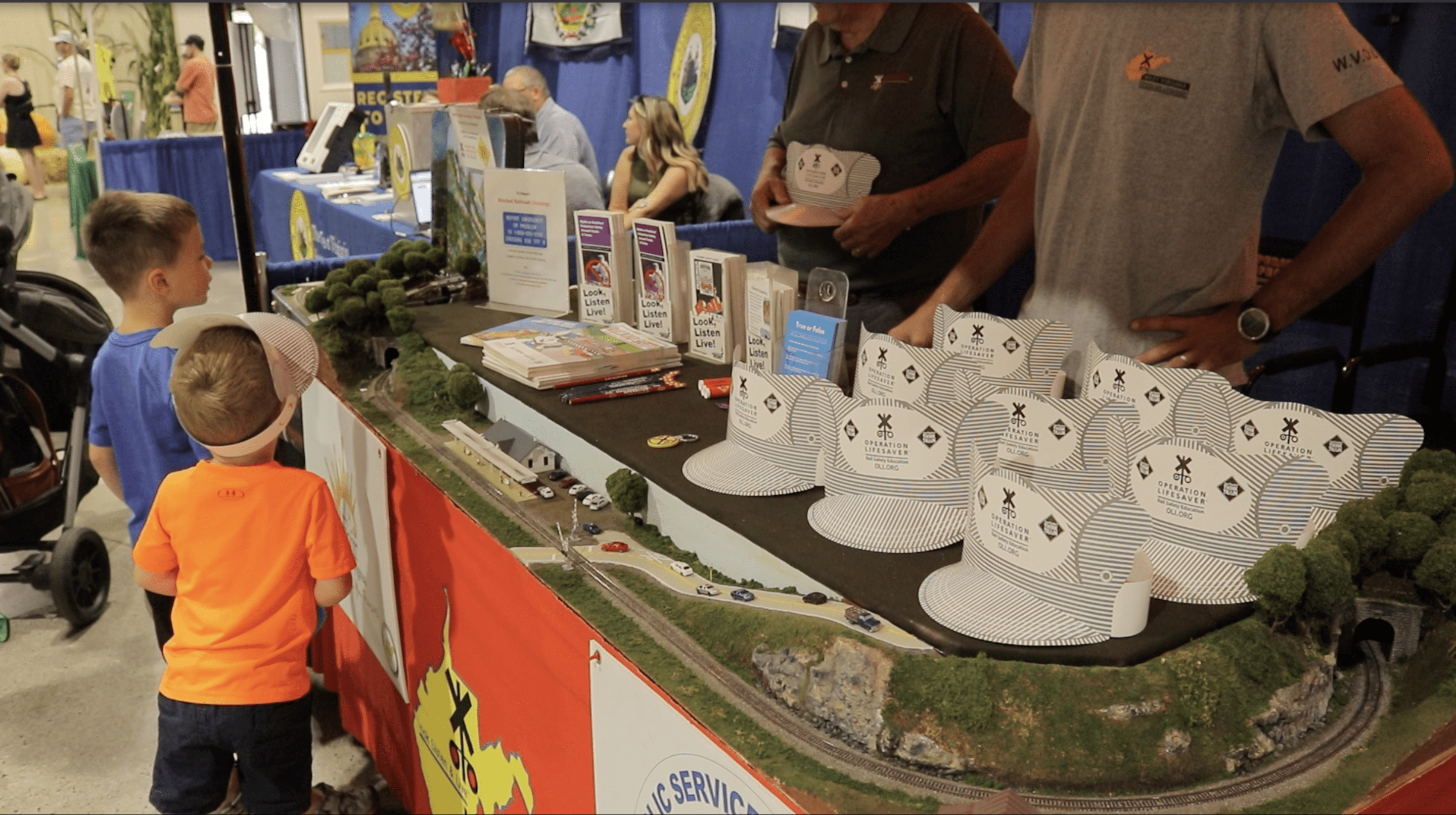 Operation Lifesaver’s booth features a new display with model trains and operating crossing gates, providing a hands-on way to demonstrate the critical message: never cross the tracks when the gates are down.
