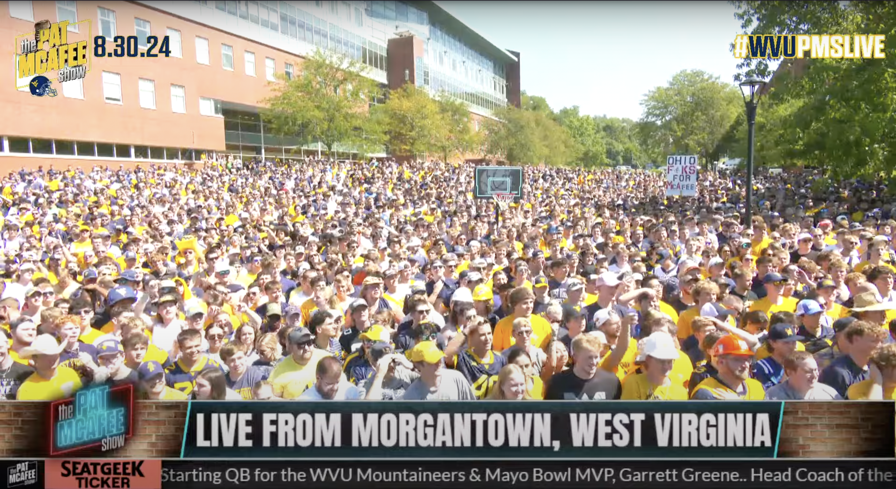 MORGANTOWN, WV (LOOTPRESS) – It was a homecoming of sorts in Morgantown this afternoon as the Pat McAfee Show drew thousands to campus and featured discussions with multiple WVU alumni.