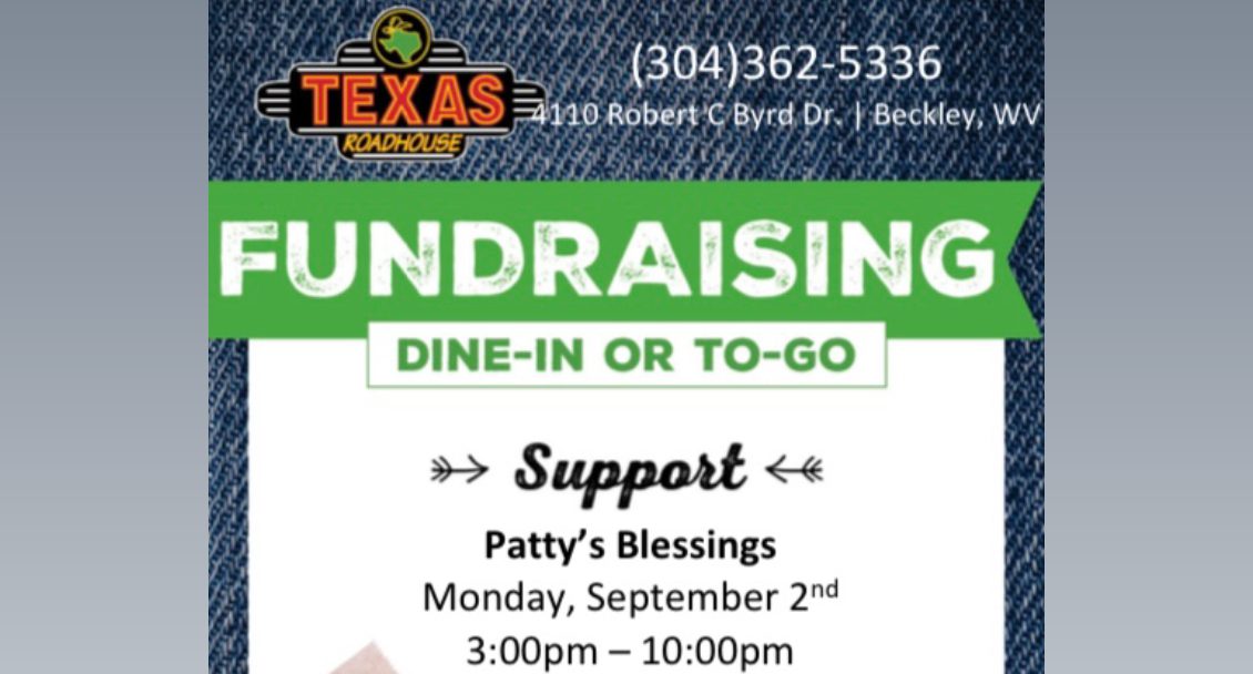 Patty’s Blessings has announced that the organization will be teaming with Texas Roadhouse of Beckley on Monday for a Dine and Donate fundraiser event.