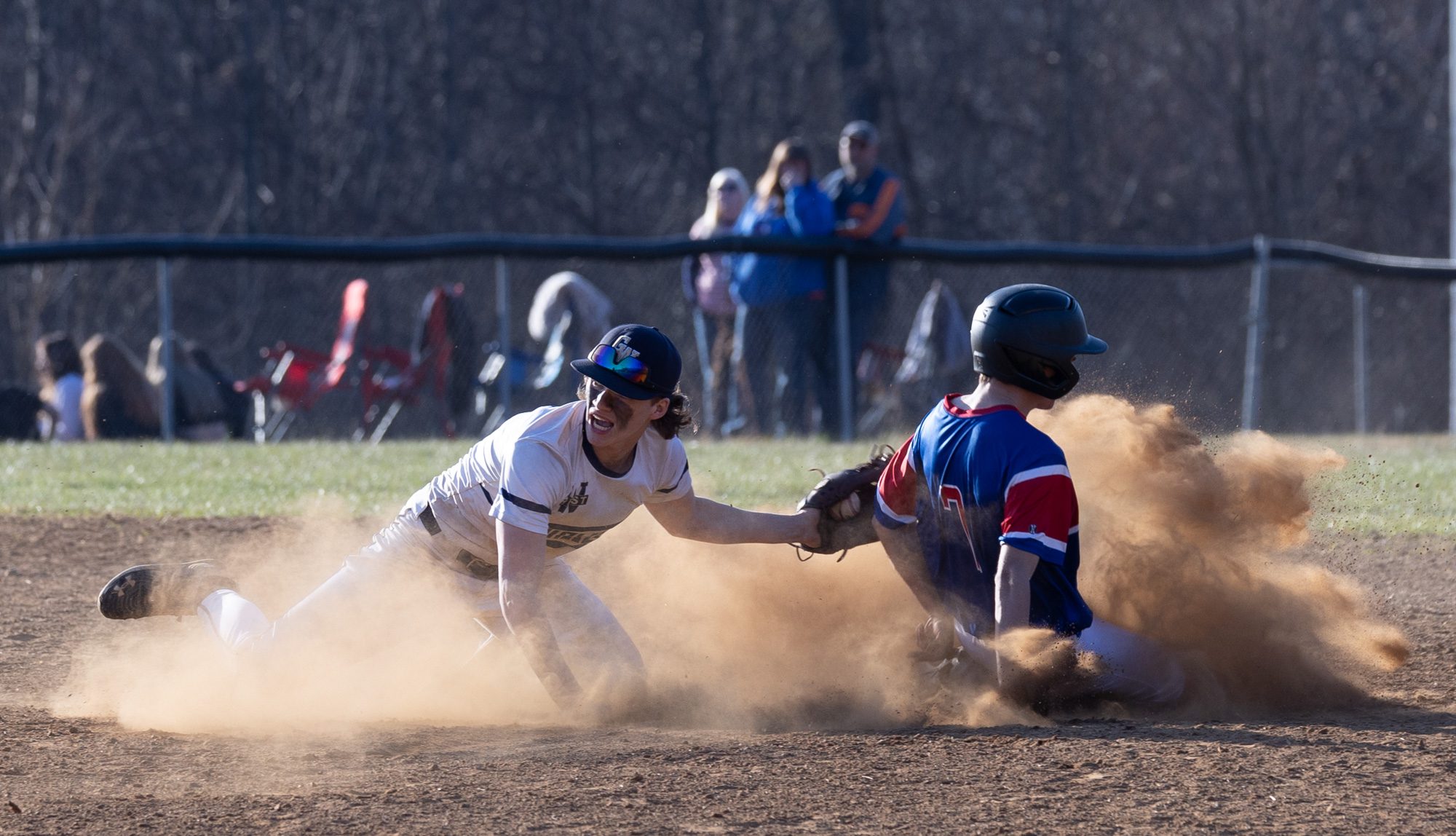 When Holliday slid in safely Vandall broke for second base drawing a throw which in turn, allowed Holliday to scamper home for a 2-1 advantage.