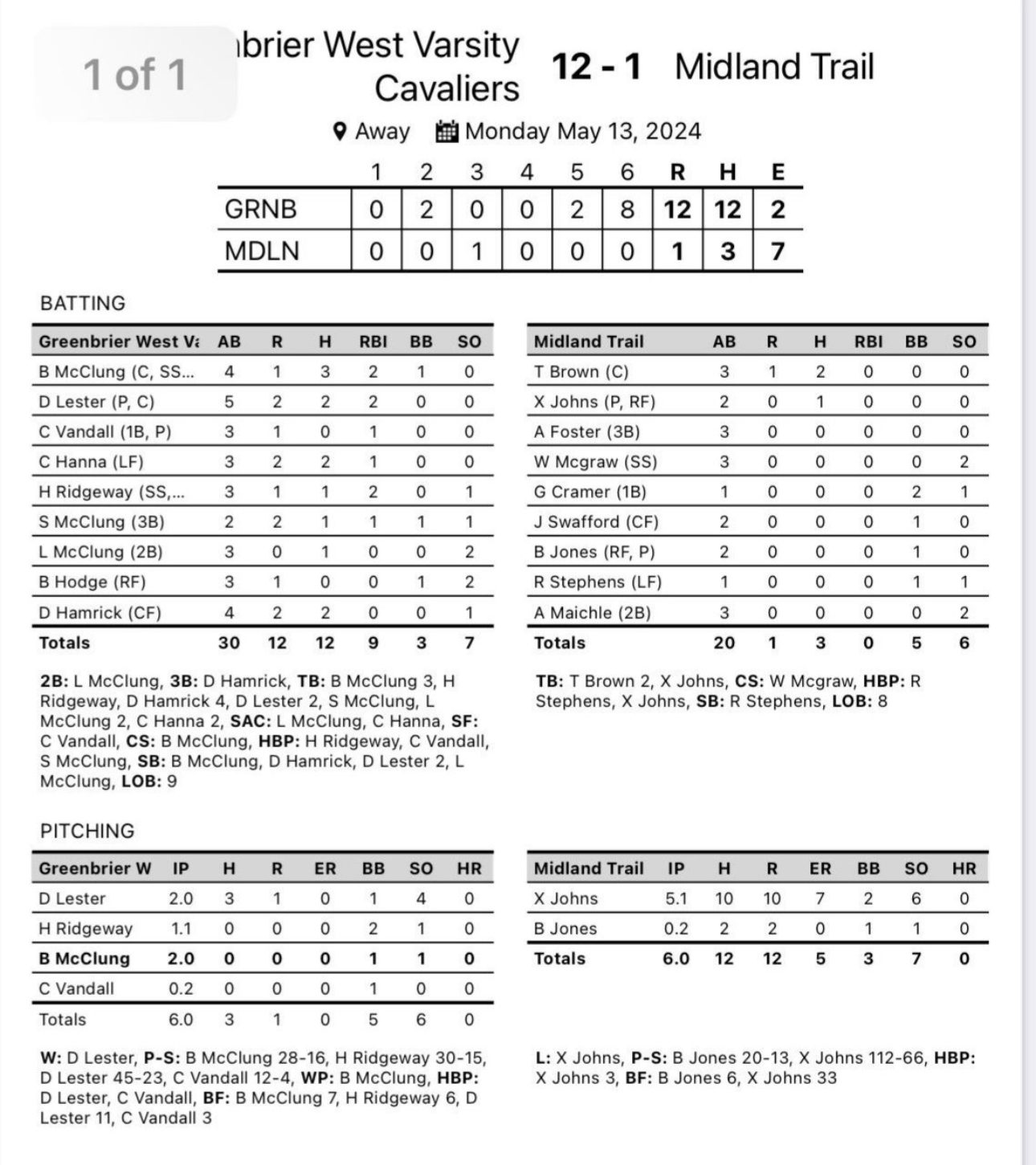 Hico – Greenbrier West exploded late, toppling Midland Trail 12-1 to end the Patriots’ season Monday in Hico.