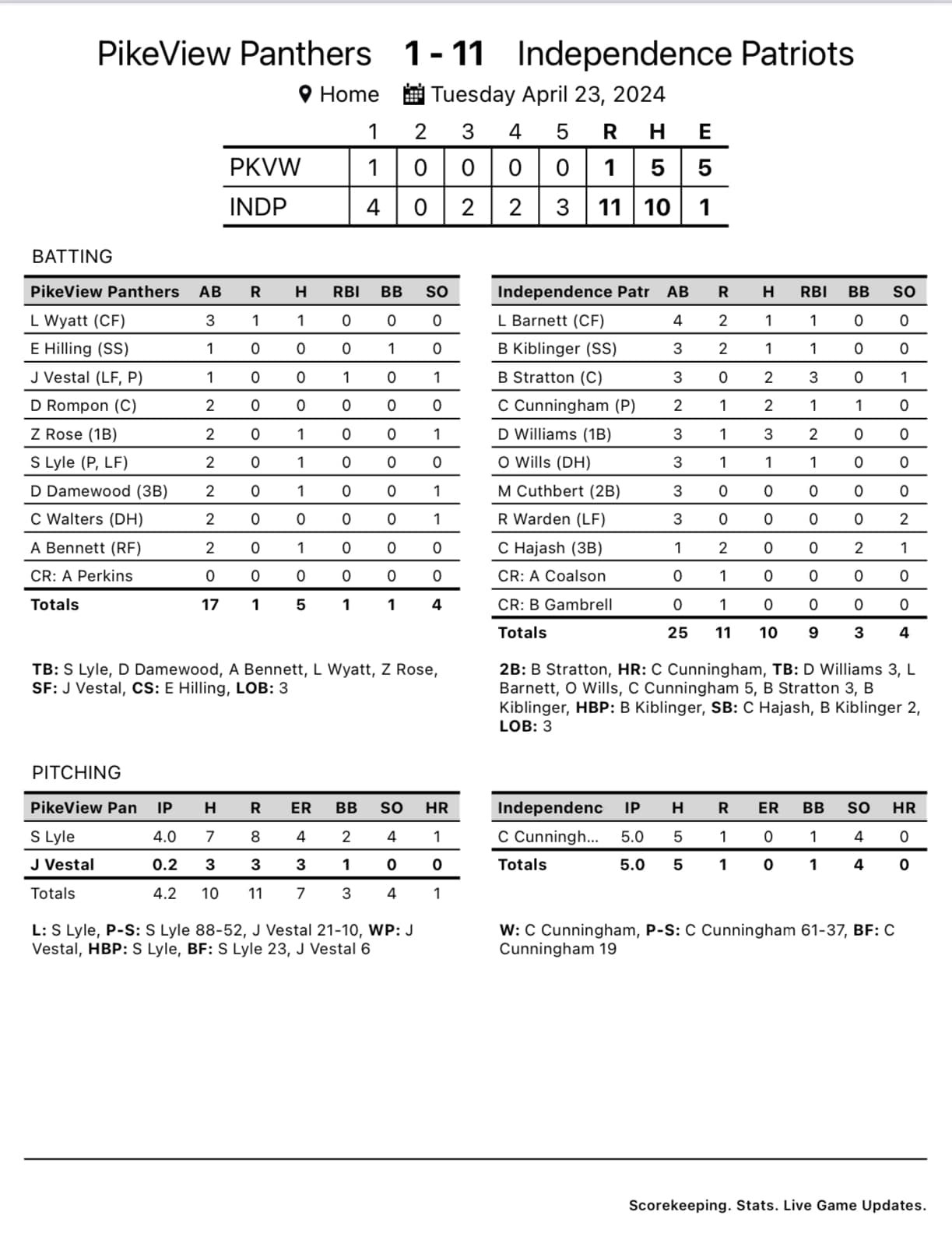 Blake Stratton made PikeView pay with a double down the right field line creating a 2-1 advantage and the home squad never looked back.
