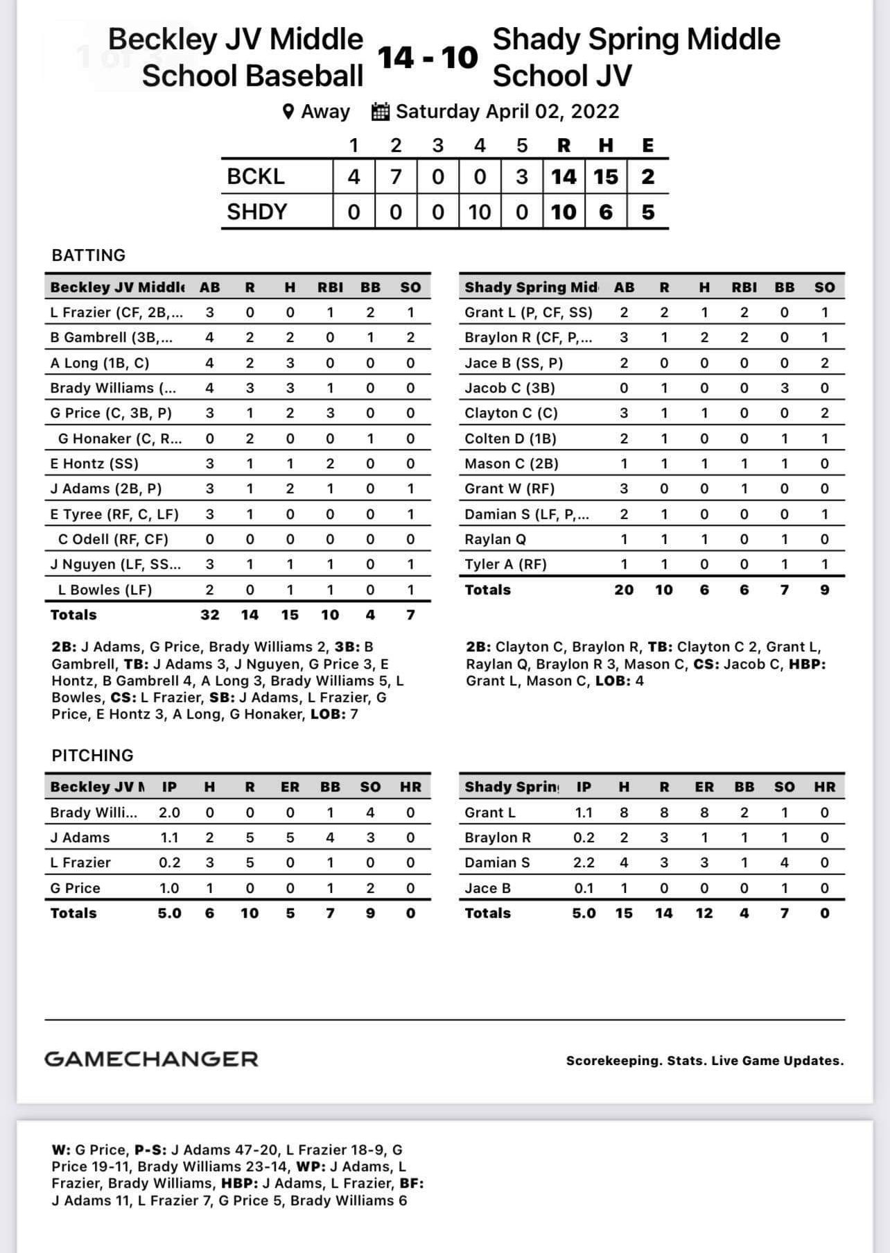 Beckley 14, Shady Spring 10