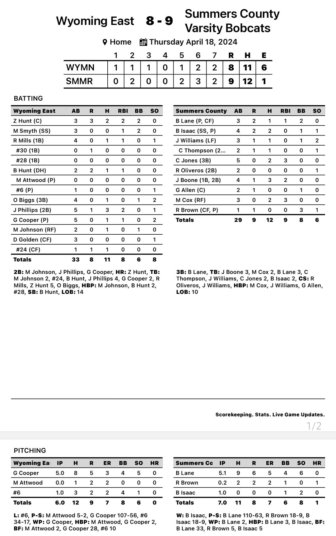 Summers County 9, Wyoming East 8