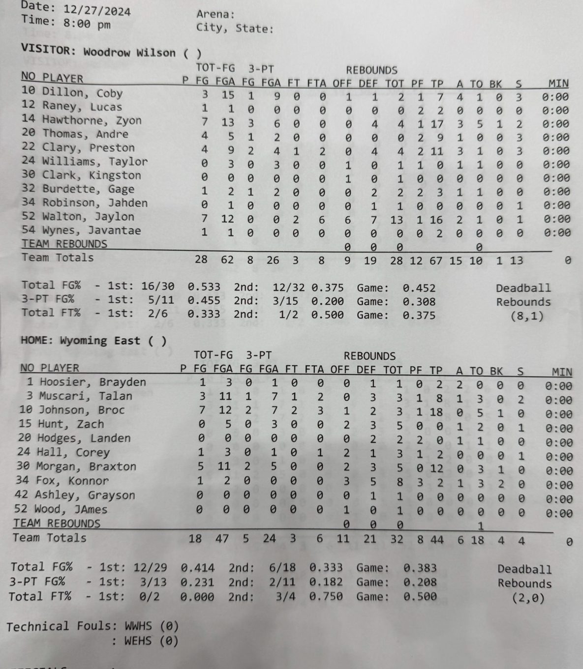 “It was not getting back on defense,” Wyoming East interim head coach Herbie Brooks said. “I mean, yes, they sped it up, we took some shots, I’m not gonna say great shots. We have a problem at this armory, every time I’ve coached, It’s three, 3-point lines out here and they’re open, but they’re three or four feet behind the last 3-point line, where when we’re in our gym, it’s one 3-point line, we’re open and we get a good shot. Here we’re taking 25-, 26-foot shots.