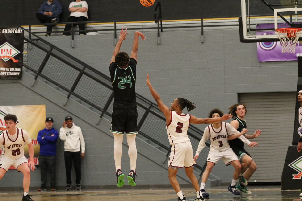 Cole Lambert hit a jumper for a three point lead with 1:29 to play before he electrified the crowd with a 3-point bomb from outside the half-court line to beat the third quarter buzzer for a 36-30 lead.