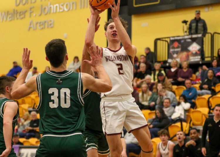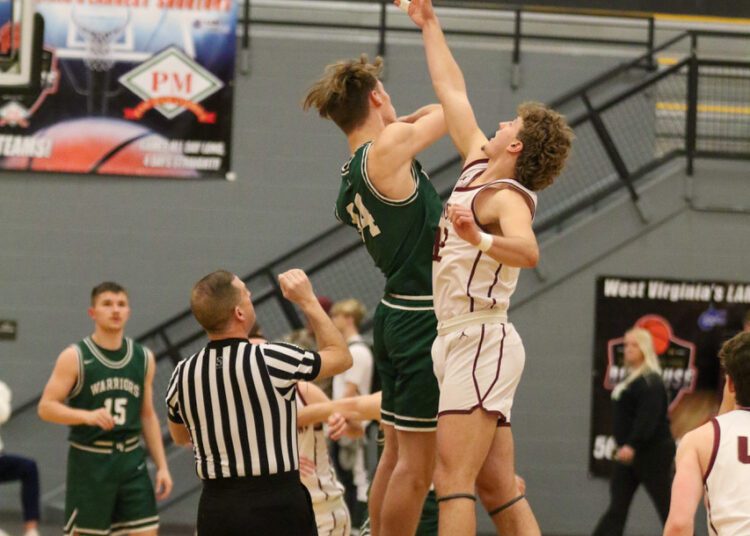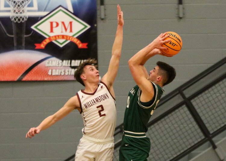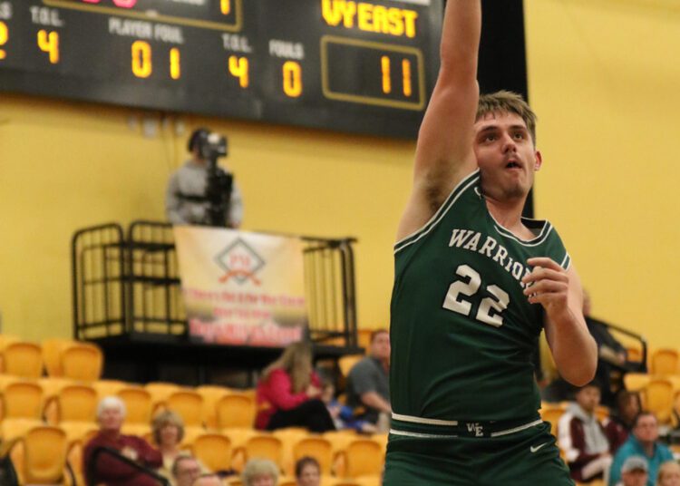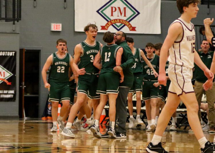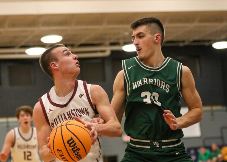 A 3 from Parker Schramm at the 3:30 mark of the third quarter put Williamstown back in front briefly before a stickback from Braxton Morgan put the Warriors on top at 31-30.
