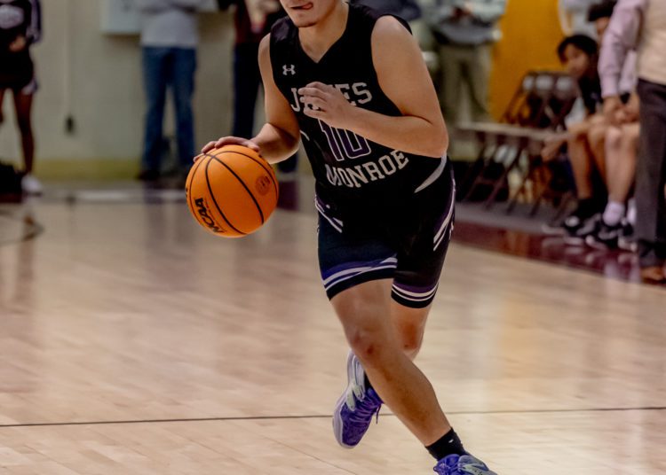 “I’ll tell you exactly what we did,” James Monroe head coach Matt Sauvage laughed. “I told them ‘When (Hairston) touches the ball, there better be somebody standing there waiting on him.’ You can’t handle him by yourself. He’s too good of a player and our guys know that and they were just being slow to the ball. I guess they didn’t understand how fast we wanted them to get there and then finally in the second half they bought into it and got it out of his hands a little bit quicker. When the double came over he was catching the ball a little further out and that’s always going to benefit us when we do that.”