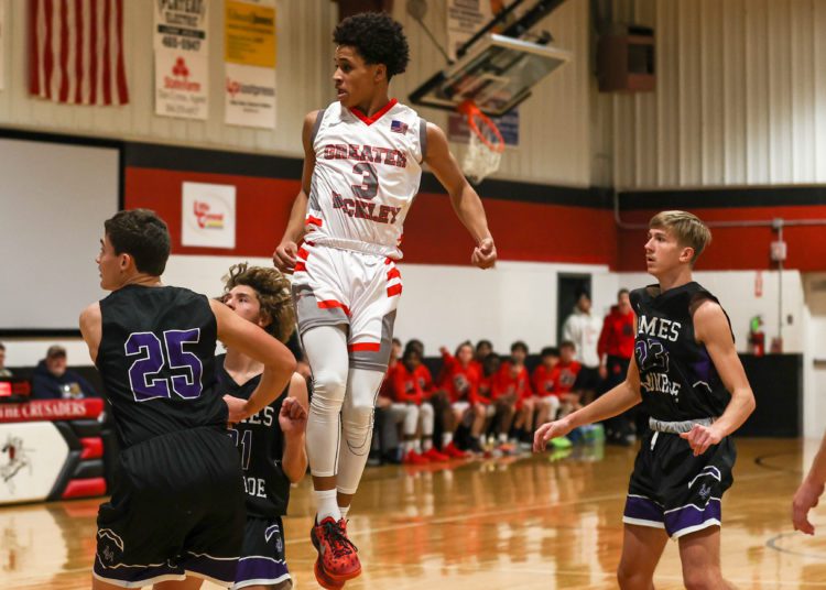 After three ties in the first quarter, a triple from Kaden Smallwood and a buzzer beater from John Rose gave the Crusaders a 21-16 lead.