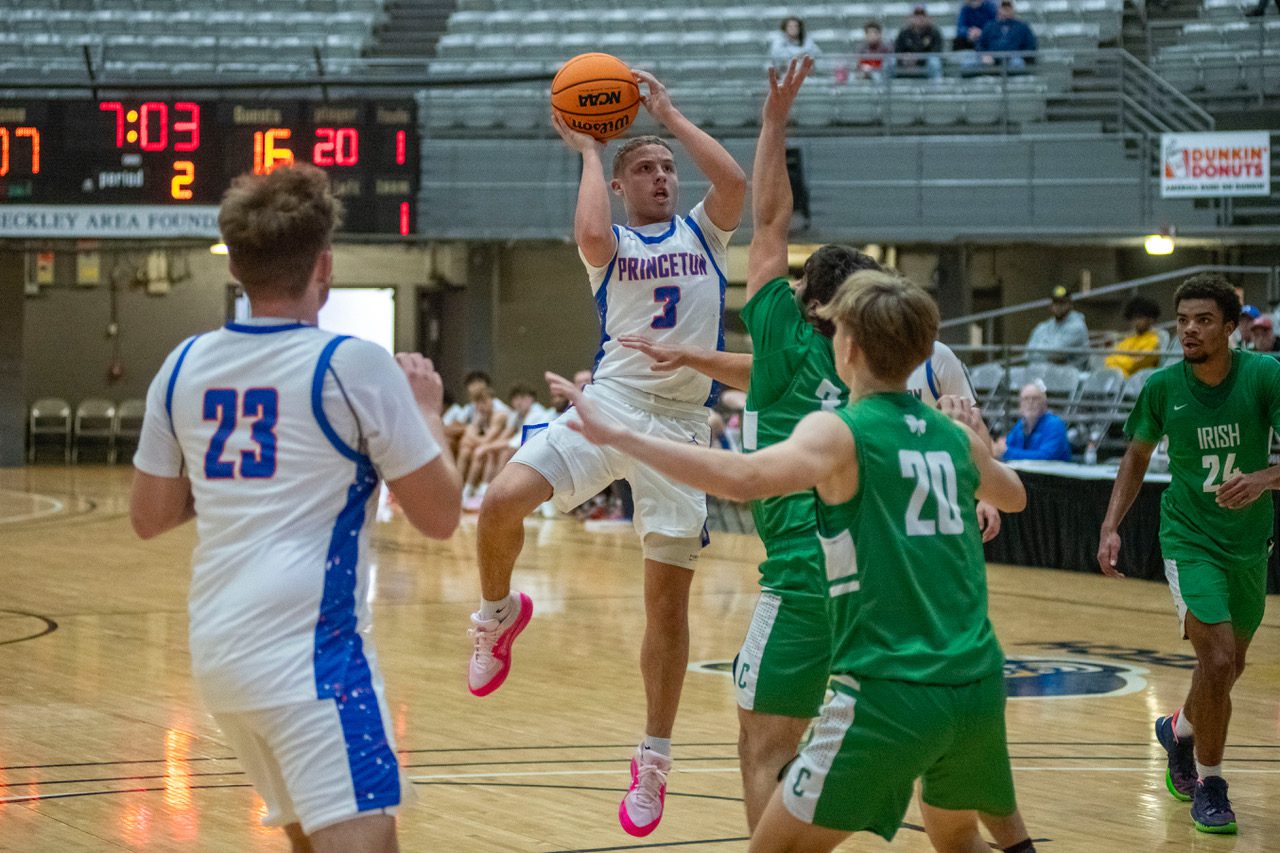“I mean, their defense has been the best we’ve seen all year,” Princeton head coach Robb Williams said. “You know, we played a tough game last night in Summersville against the good team, and we’re able to run and play tough. Today, they were all over the guards, which we expected that this year from some teams. And fortunately, we have a lot of sets that to execute against them but their defense was top notch. I mean, they were in our face, they gave our point guard (Gavin) Stover a heck of a time an dit didn’t help with one of our most gifted offensive players (Fleming) out.”