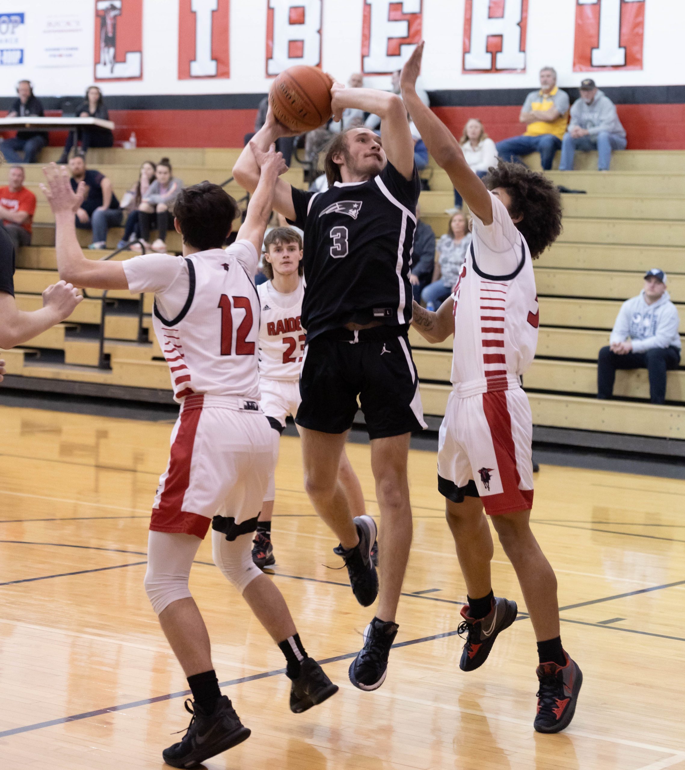 Back-to-back triples from Ethan Williams and Adam McGhee gave Liberty its first lead and the Raiders never trailed the remainder of the night.