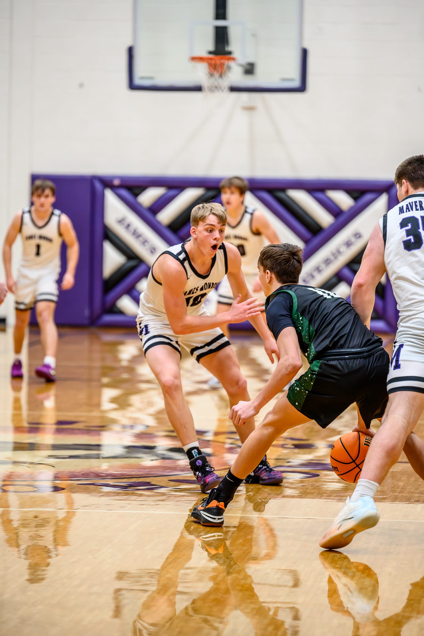 East center Konnor Fox made his presence known with a layup and a pair of free throws to tie the game but another 3 from Miller put the Mavs on top. Miller’s trey was the first of three consecutive with East guard Talan Muscari nailing one followed by another from Layton Dowdy.