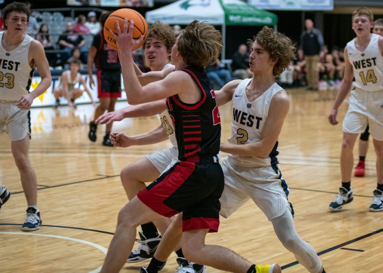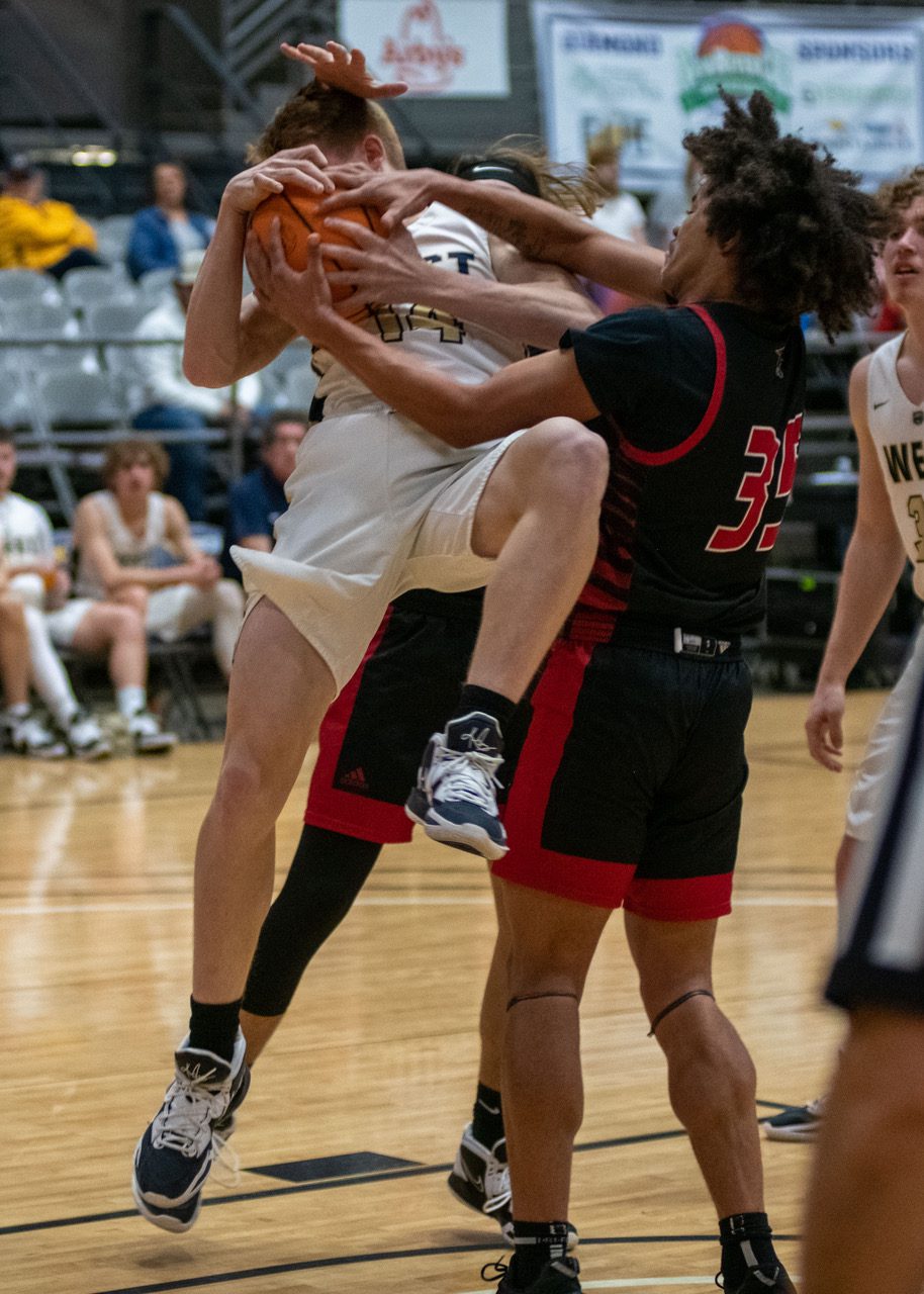An Ethan Williams 3 to open the second half made it a 41-21 game but it also marked the start of West’s comeback bid. An 8-0 run that featured six points from Dale Boone turned the heat up before Cook canned his fourth 3 of the game. Brayden McClung had an immediate answer on the other end but a bucket from Rasean Simms and Cook’s fifth trey of the game pushed the advantage back to 17.