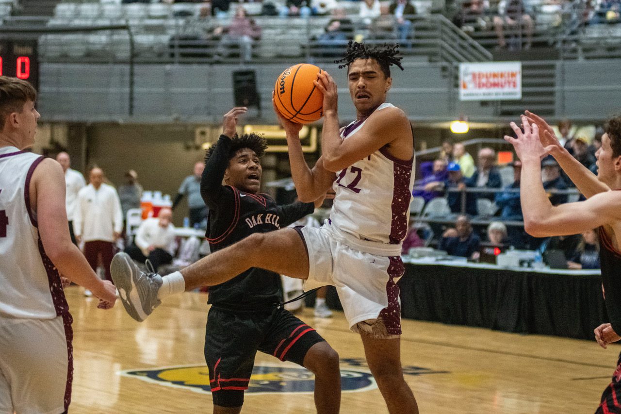 Malachi Lewis led four Oak Hill players in double figures with 19 points, followed by Trevor Kelly with 16 points. Levi Kiszka added 11 points and Andre White scored 10.