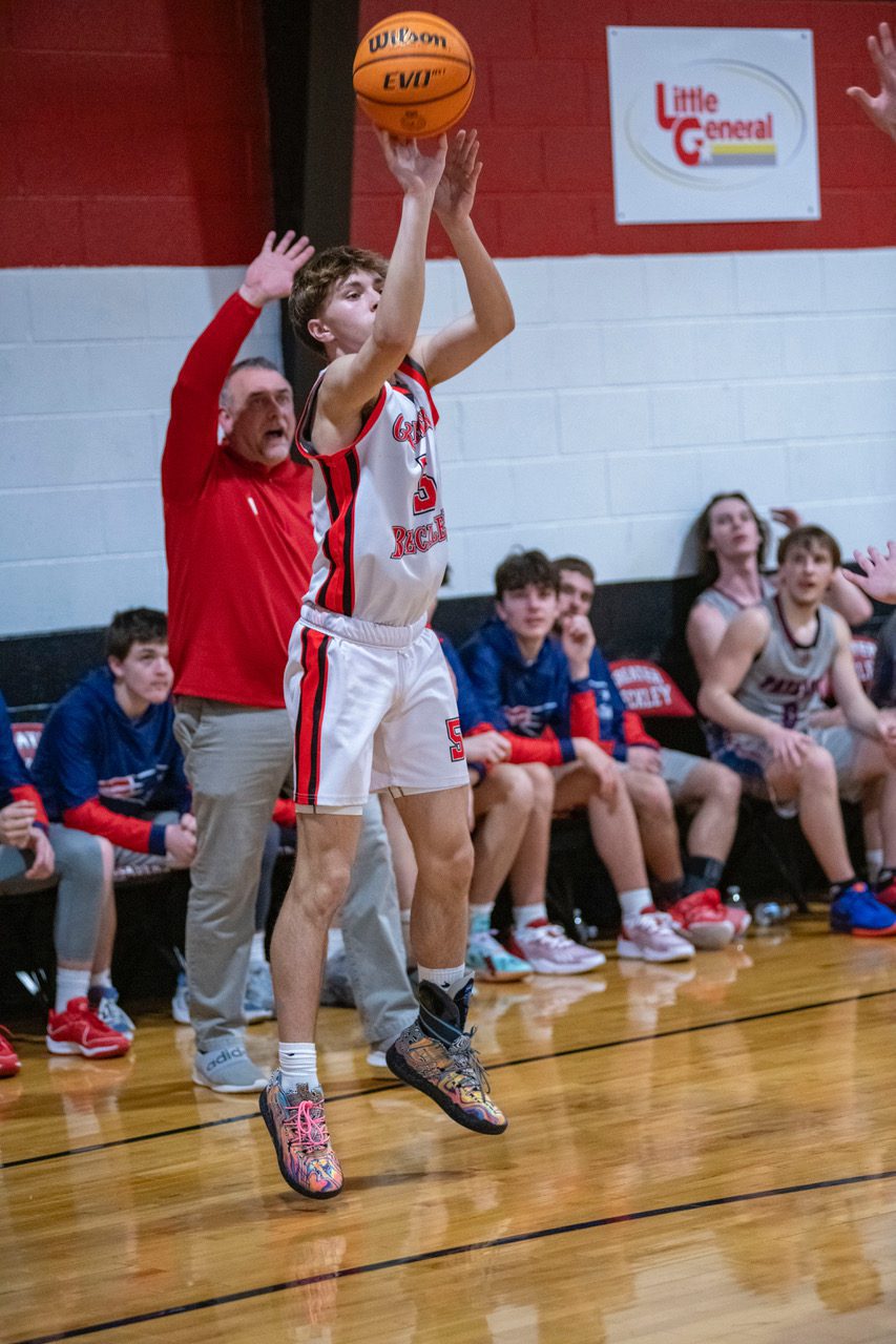 Keegan Davidson 16, Averyk Woodson 12, Javonte Spencer 12, Drew Fitzwater 19, Kellen Heffernan 2, Kash Hendrix 11, Eli Gunter 5, Josh Garlow 3, E.J. Page 3, Kaden Bolen 2. Totals 31 12-15 85.