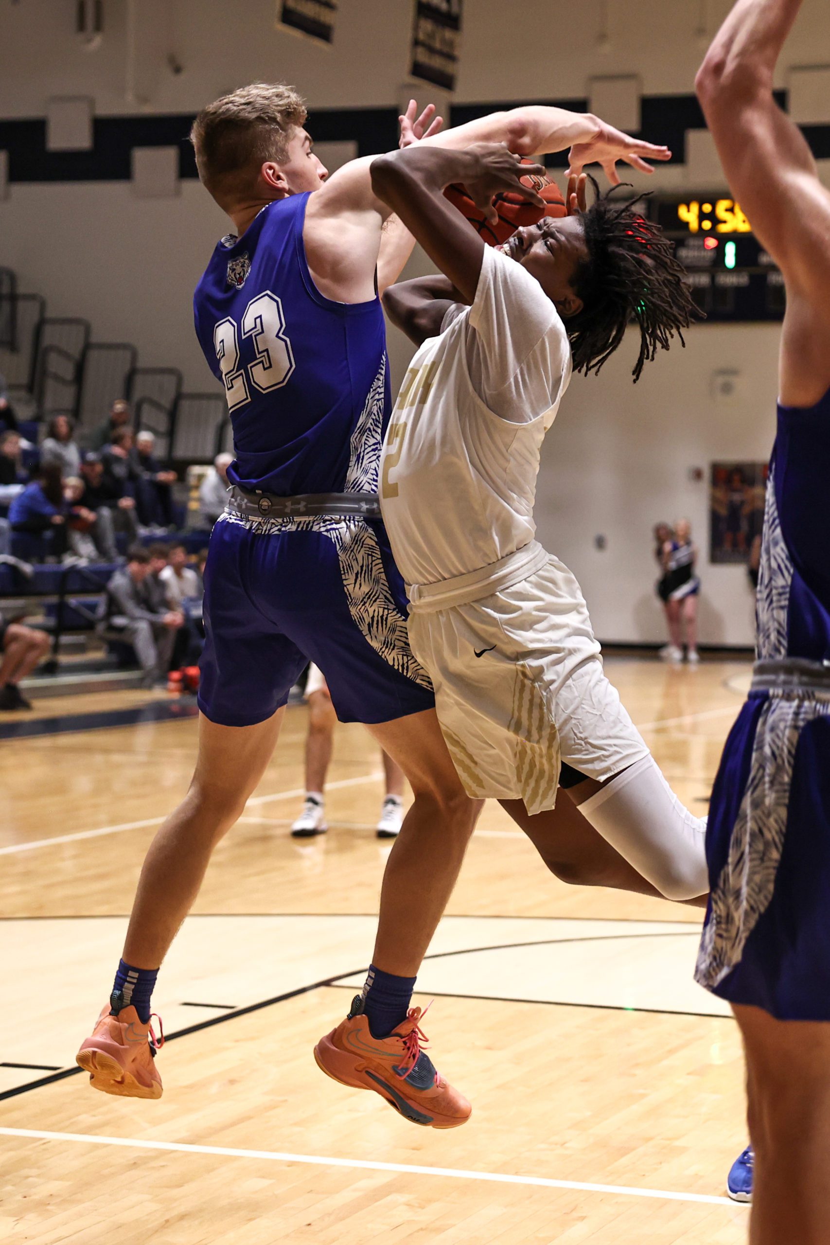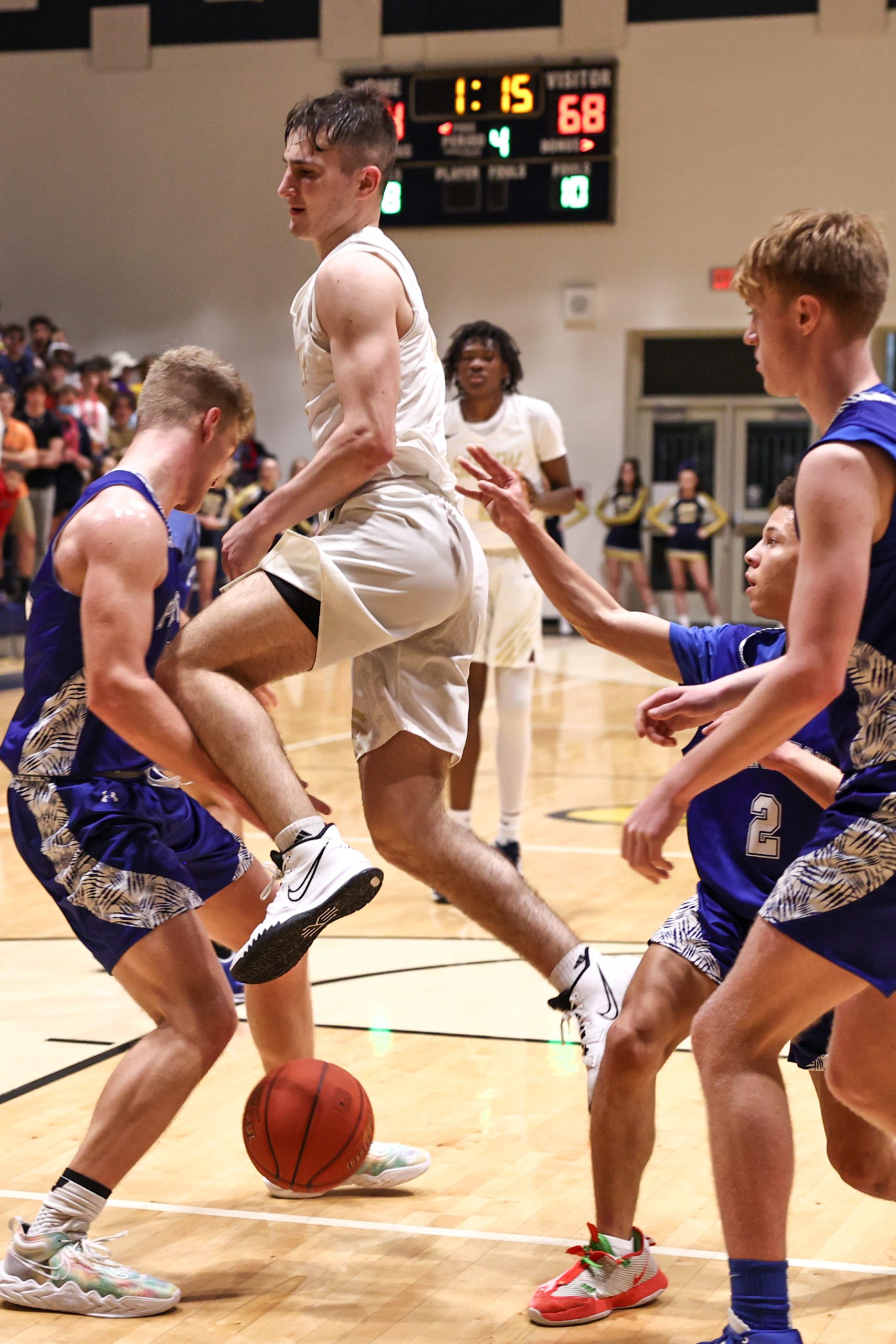 Displeased from the jump, Olson called his first timeout just two possessions into the game, voicing his frustrations while benching starter Ammar Maxwell. After some constructive criticism Maxwell was reinserted into the game and heeded Olson’s words, scoring 17 first-half points for the hosts.