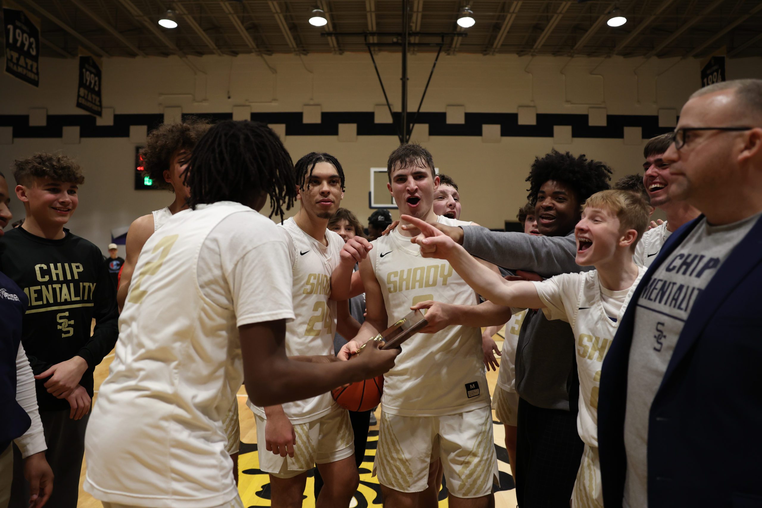 When the halftime horn sounded, Shady had drilled 10 triples and led 49-27.