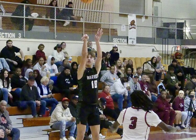 They forced the Warriors into a boat race early, trailing 18-17 after a quarter, taking the lead early in the second following buckets from Greyson Parris and Amari Helm. East freshman Broc Johnson, who finished with a game-high 20 points, reeled off four straight to knot the game at 22 with fellow freshman Talan Muscari tipping the scales back East’s way with a 3.