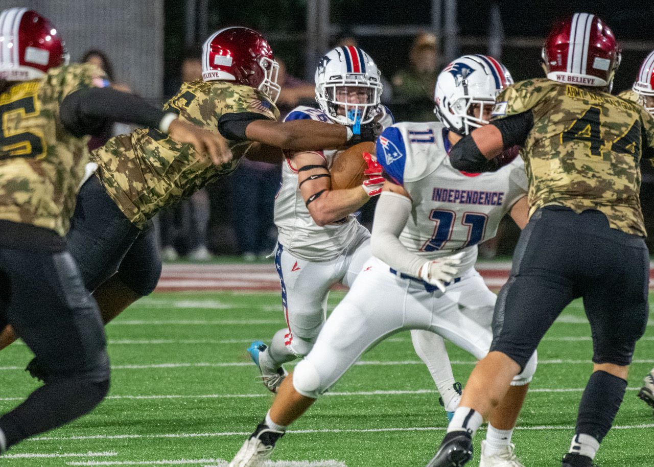 Forcing Bluefield to punt for the first time out of the half, the Patriots took to the air with Sylas Nelson at QB and Bowers at receiver. Usually on opposite ends, Nelson launched a 48-yard touchdown pass to Bowers that Ā jumpstarted the Indy offense.