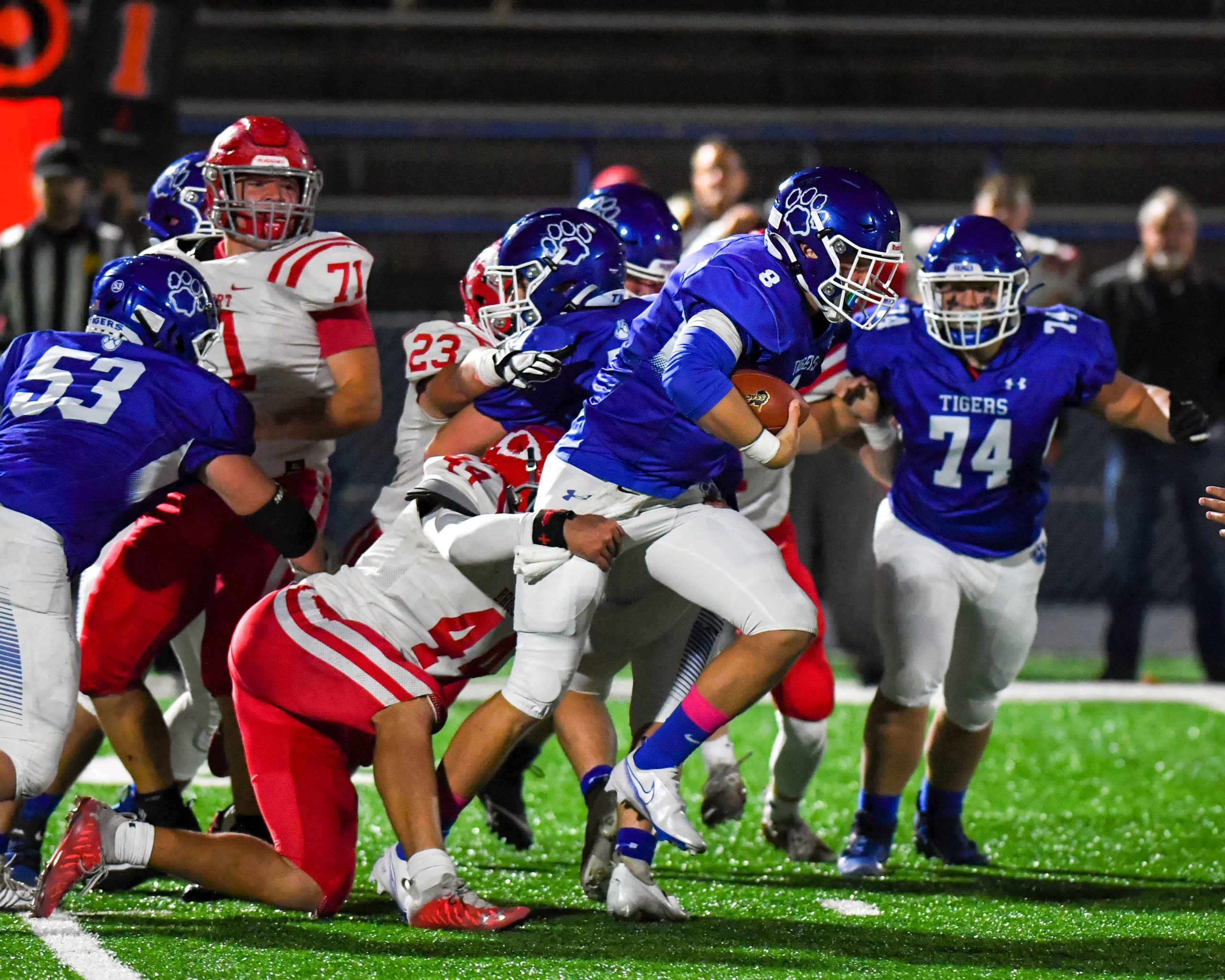 Using the tried and true formula of running the ball well and playing great defense, the Tribe punted just once all evening, moving the ball at will and coming away with timely turnovers on defense to bury the Tigers each time they gained momentum.