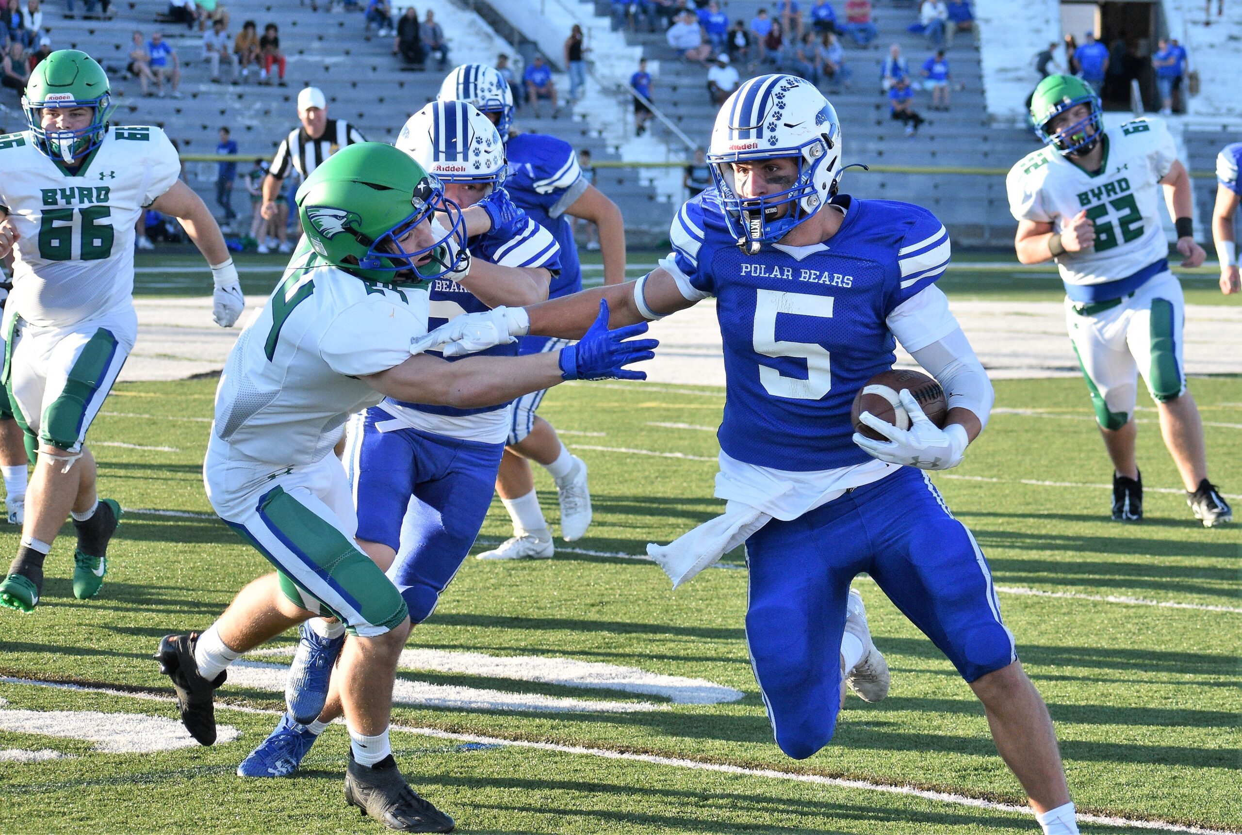 FAIRMONT – The Fairmont Senior Polar Bears came out red hot on their home turf Thursday, leading Robert C. Byrd 56-6 at halftime before letting the reserves take and secure the 62-34 win.