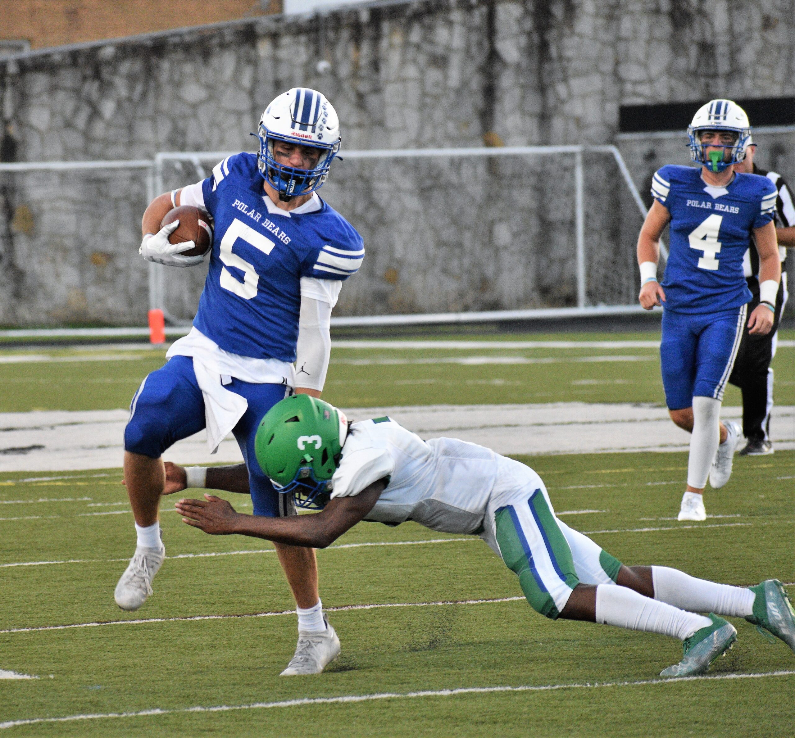 An 8-yard run from Johnson gave the home-standing Polar Bears a 56-6 lead at the halftime break, with FSHS holding a 245-130 advantage in total yards through the first 24 minutes.