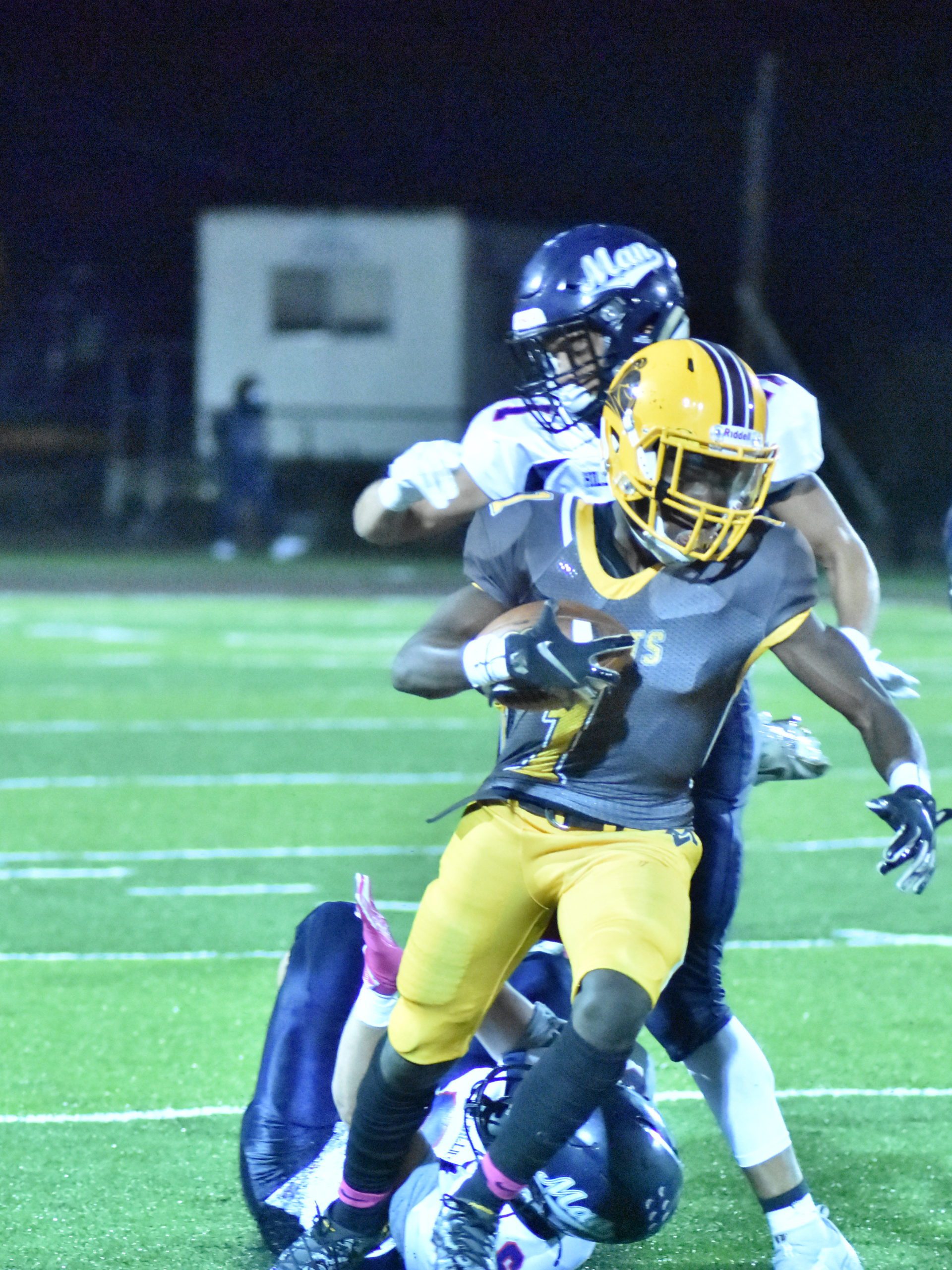 Man had 382 yards of total offense including 288 on the ground. Grimmett led the ground attack with 100 yards on nine carries and one touchdown. Jayden Brumfield added 97 yards on 17 attempts.