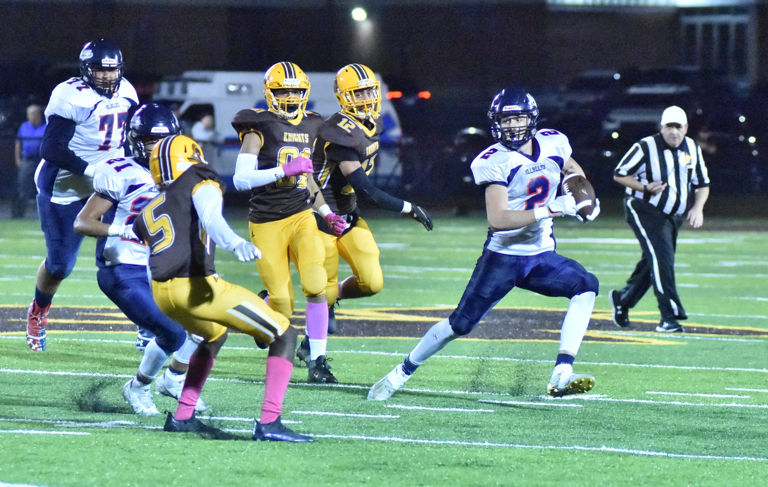 The Golden Knights scored twice in a 0:13 span to put the game on ice. Tony Bailey ran for a 47-yard touchdown and KaJai Brown returned a fumble 39 yards for the final score of the contest.