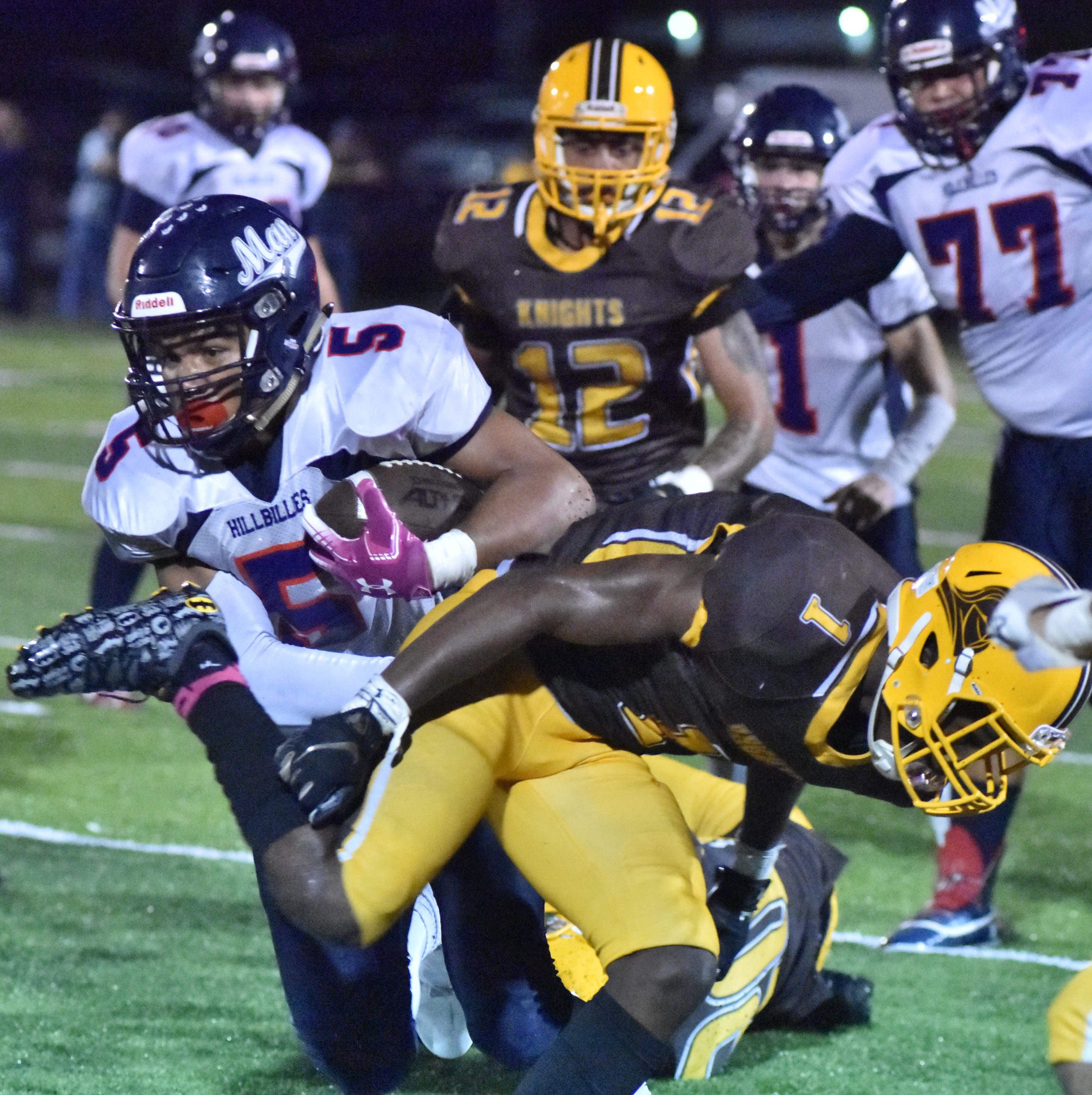 It was the first of four interceptions for the Mount View secondary as the Golden Knights intercepted three passes in the end zone. Hall had two picks and Jason Haggerty Thomas Bell had one pick each.