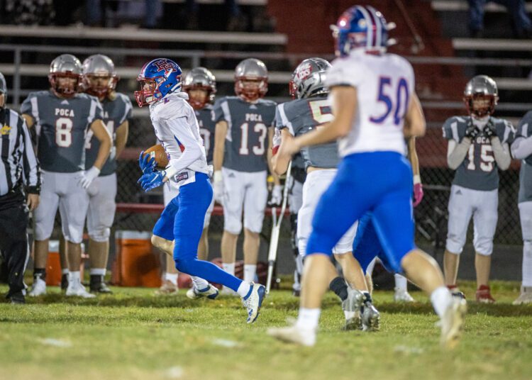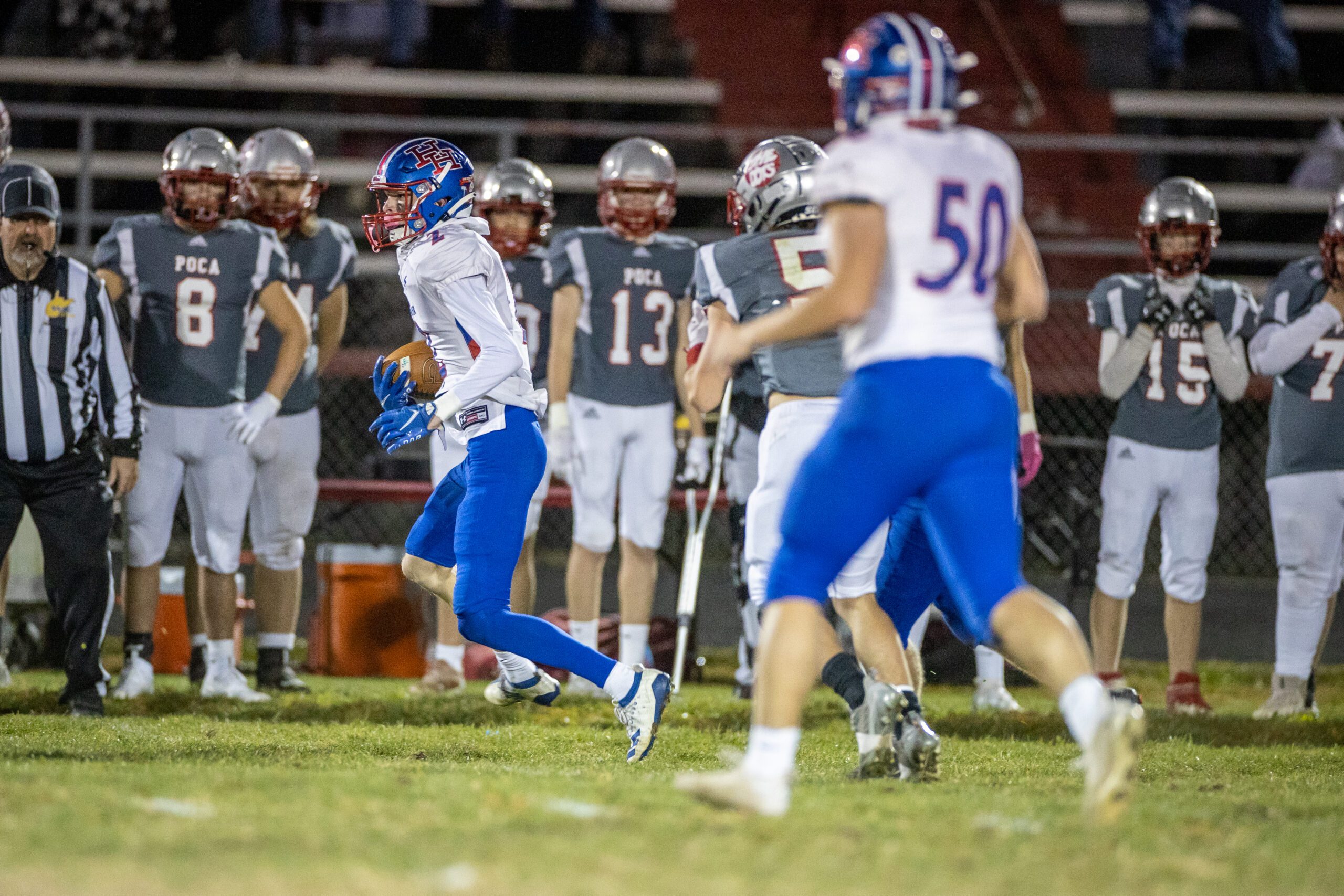 The Huskies received the ball to start the second half and Rocco Frye had a long return to the Dots’ 25. On a quick zoom pass to Jacob Burns, Burns hit the edge and didn’t stop until he was in the end zone. After a turnover of downs, Randy Hughart added another score with a 7-yard run. With the starters on the sideline, Poca’s Brad Jones had a 14-yard run to cut the deficit to 56-13. The Huskies then added the final score with a 10-yard run from Peyton Young for the final score.