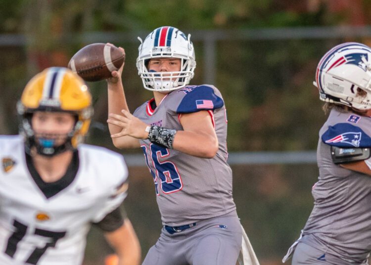 Excelling in all three phases, the host Patriots built a commanding 30-6 halftime advantage with their special teams unit earning most of the spotlight. They returned a kickoff 84 yards for a touchdown courtesy of Brady Rose, benefitted from a high snap on a punt attempt that resulted in a safety, set the Indy offense up twice near the 50 and twice more in Scott territory, made sure the Skyhawks went scoreless on both of their two-point conversion attempts and blocked a PAT to boot.