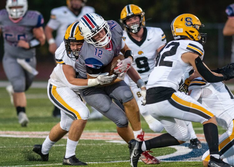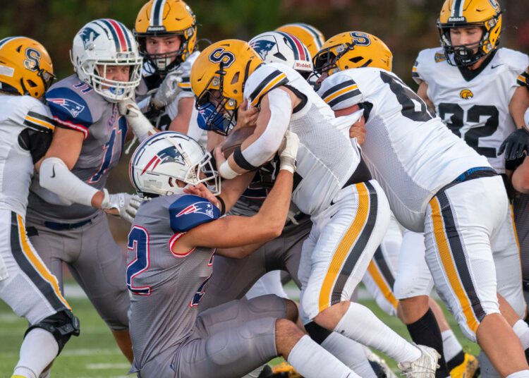 All-state linebacker Landon Riddle made a diving interception at the Independence 6 with just over a minute to go, helping the Patriots stave off a second-half rally from Scott and secure a 30-24 victory Friday evening at Independence.