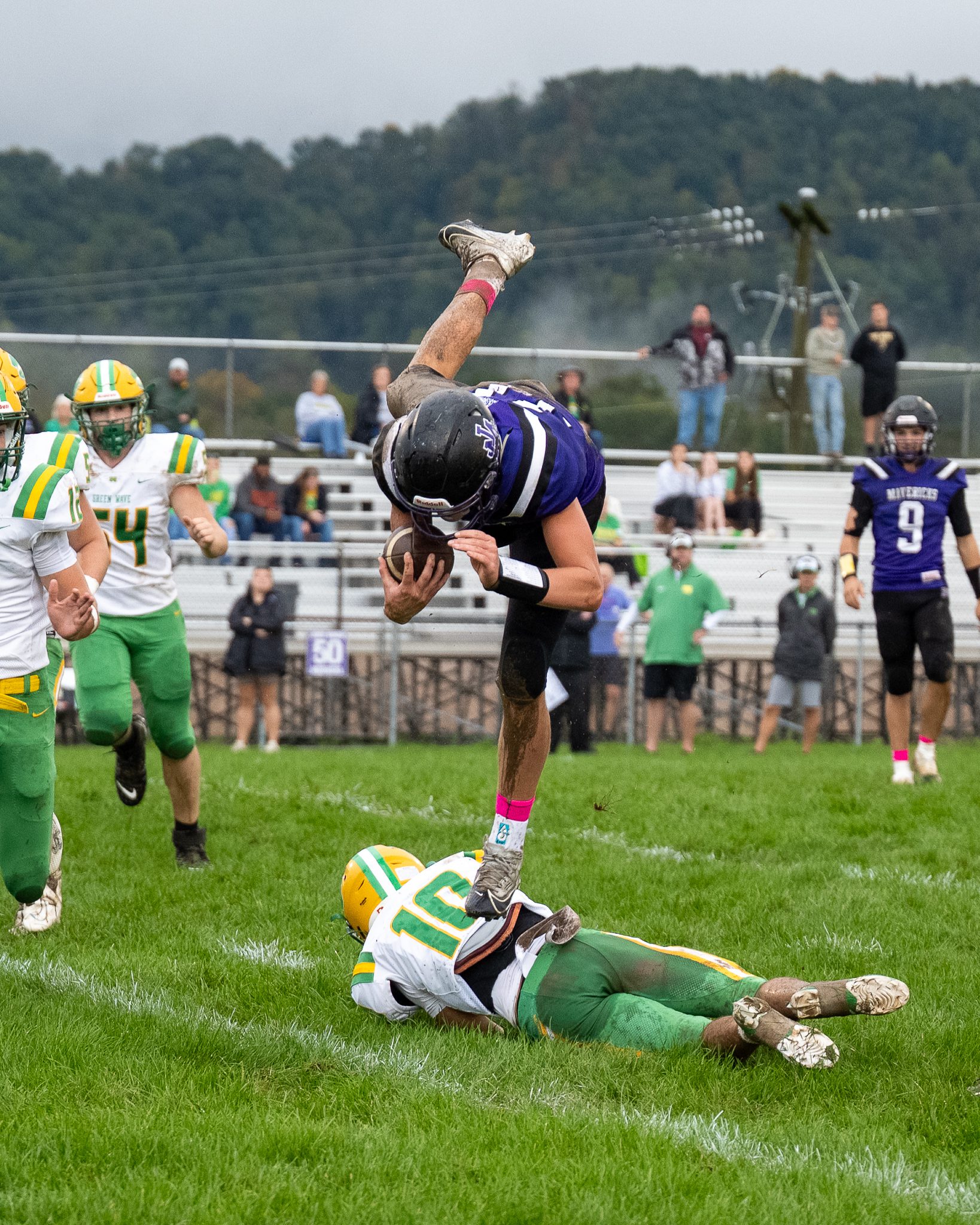 Though the interceptions serving as arm punts was seemingly the best strategy for Narrows as a punt block by Andrew Hill and a recovery in the end zone by Kole Ballengee buried the Green Wave at 27-0 with 8:29 to play in the half.