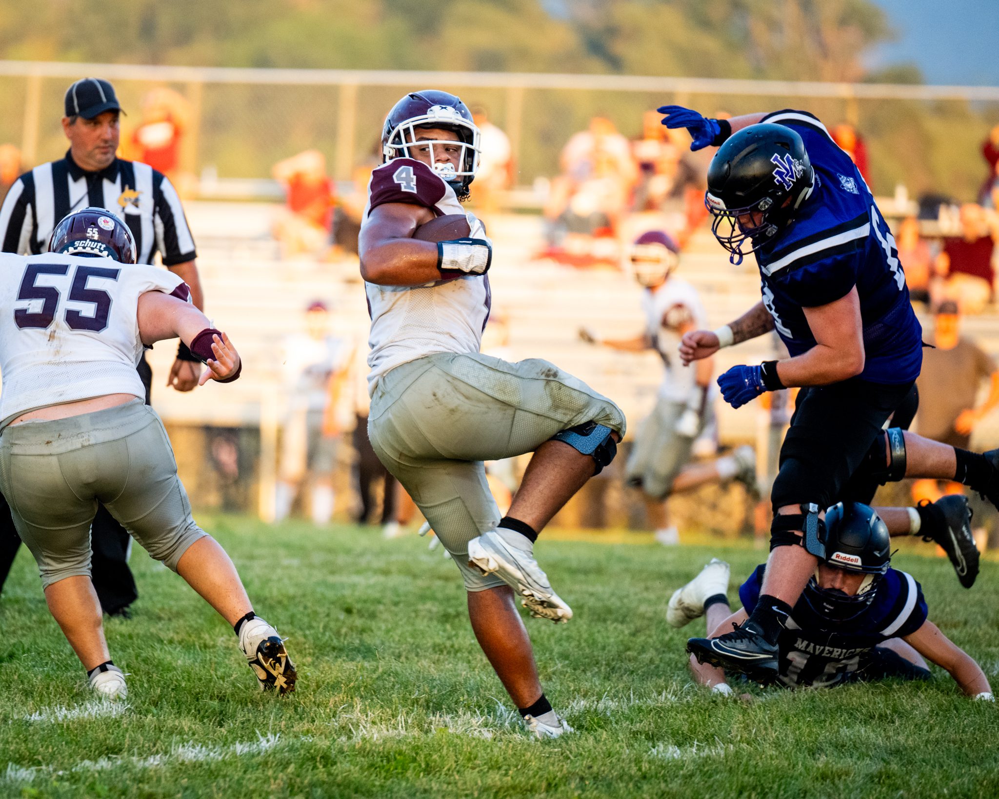 Isaac Martin led the assault for the Maroon Knights with 156 yards on 17 carries, finding pay dirt twice.