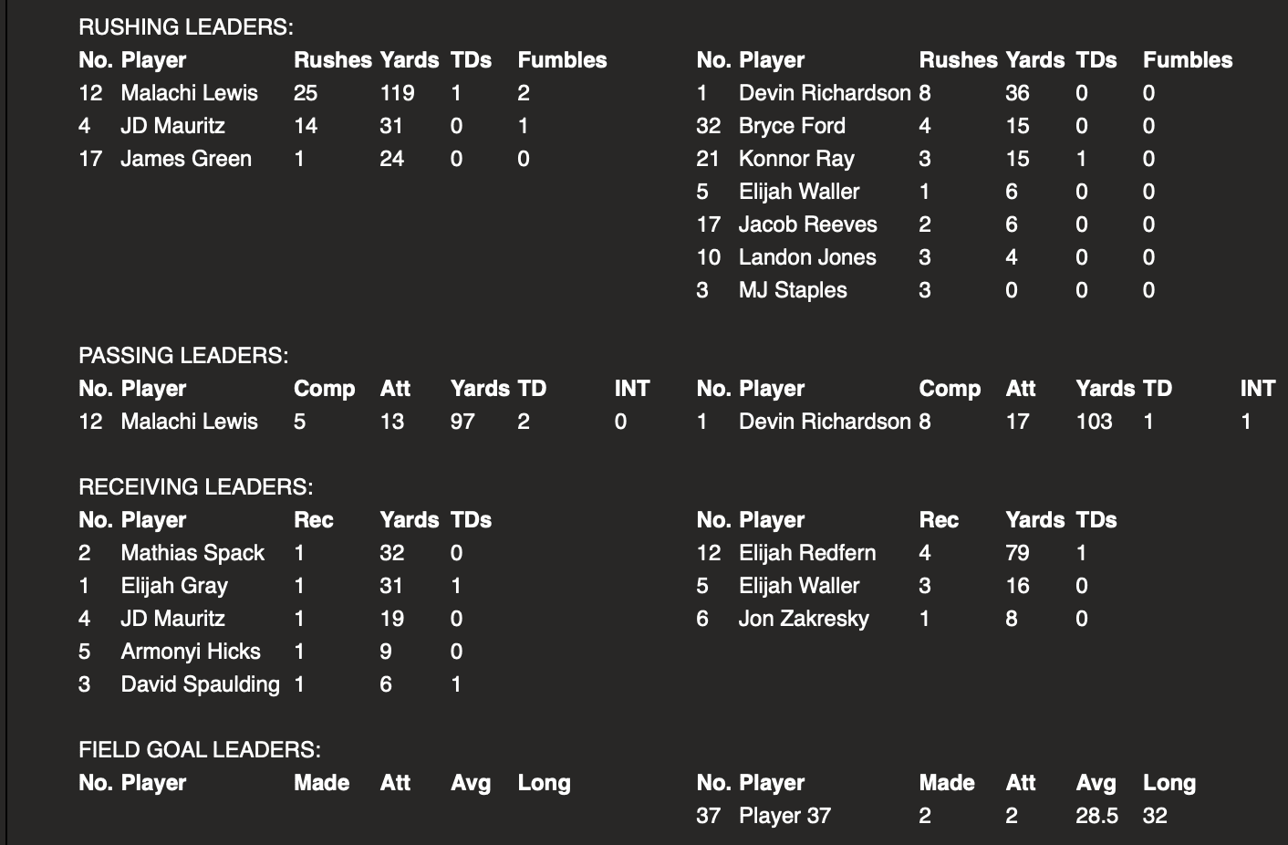 Relying on Lewis proved to be a sound strategy as he accounted for two passing touchdowns and another with his legs on the offensive side of the ball.