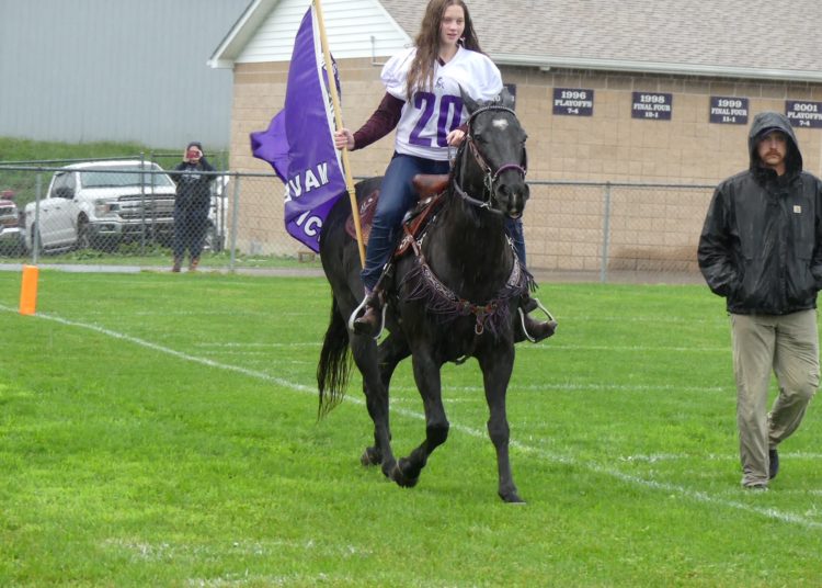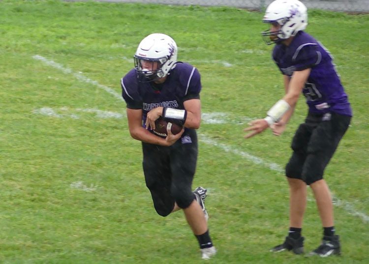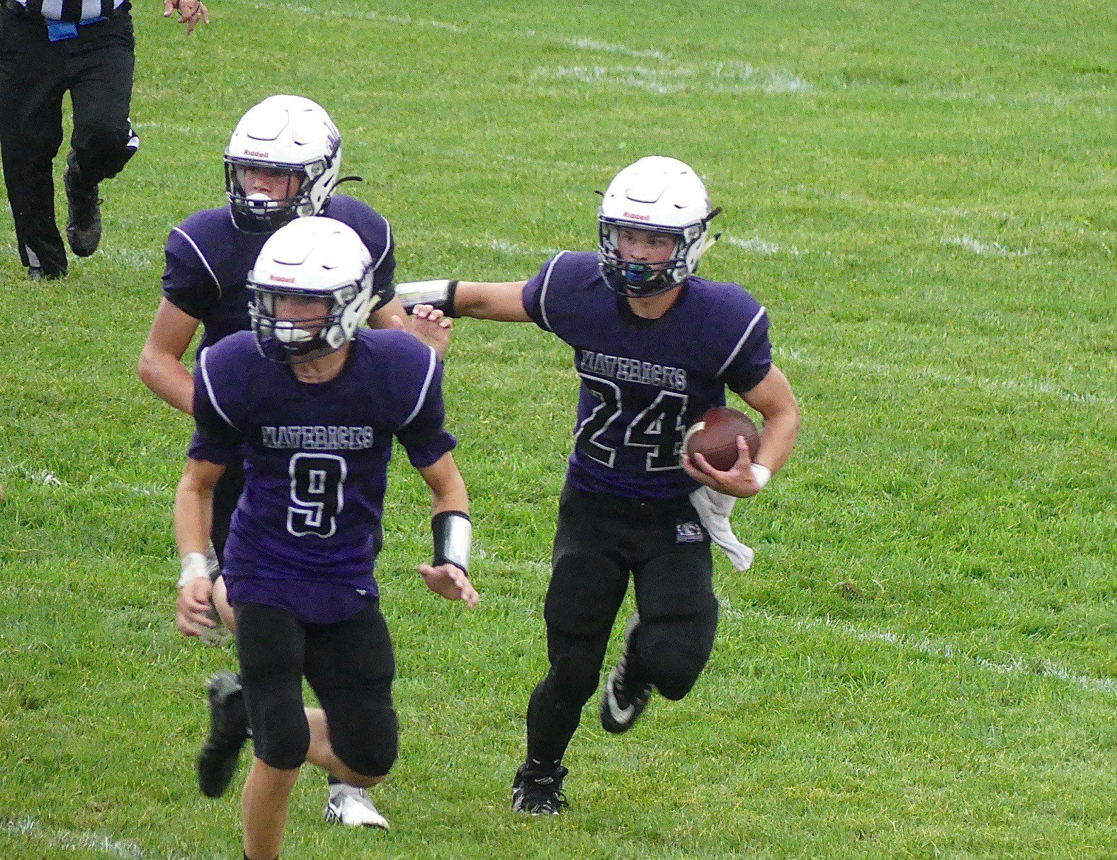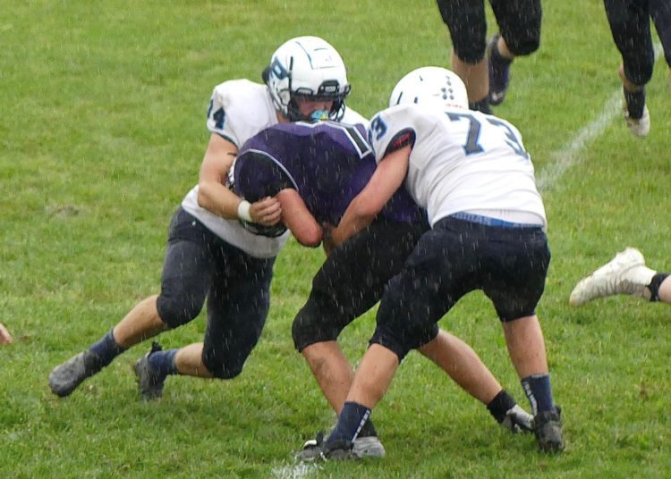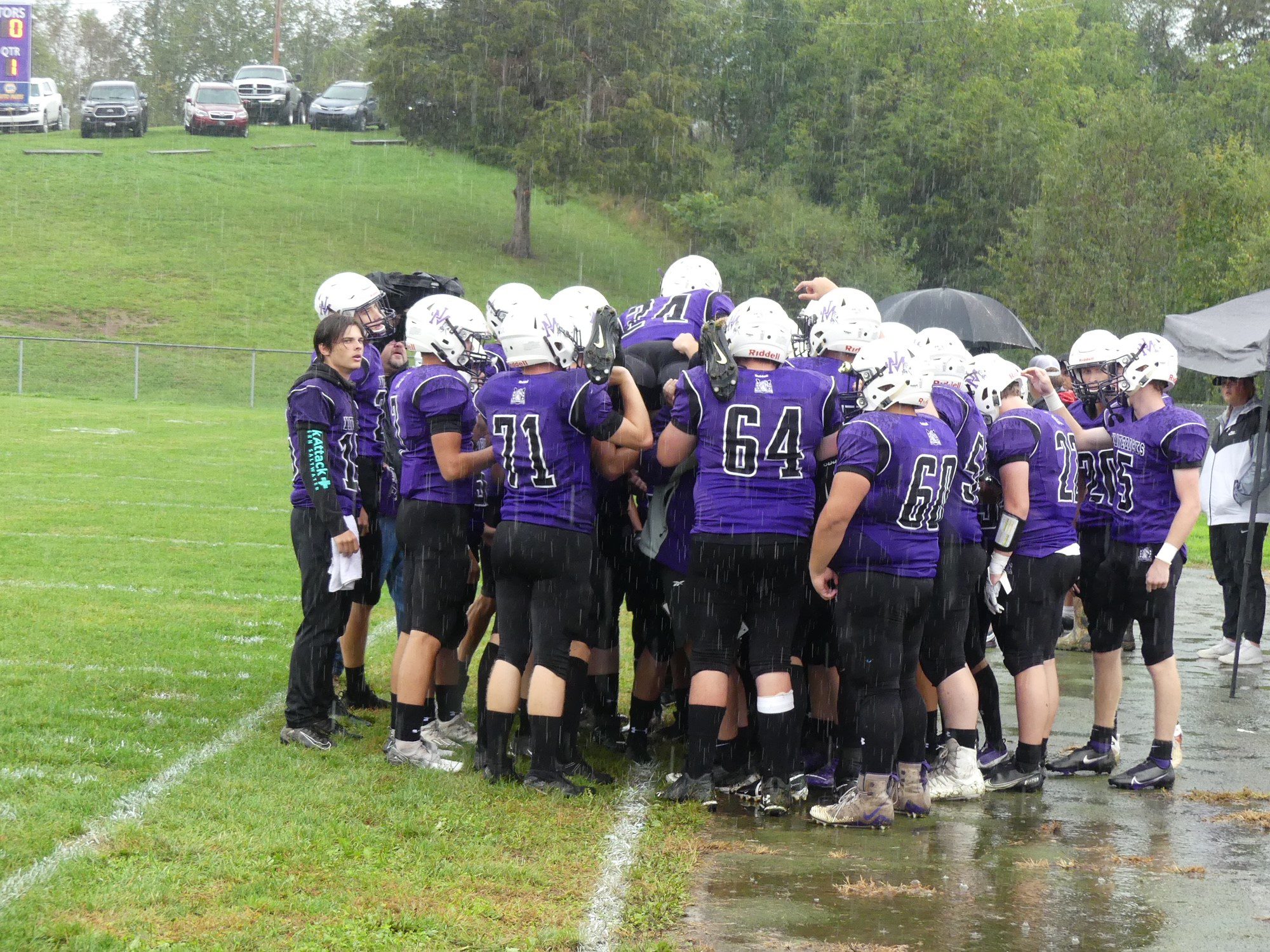 Lindside – Playing with heavy hearts after the death of former coach and local legend Ben Thornton over the weekend, the James Monroe Mavericks came away with a late turnover to beat Pendleton County 12-7 in Lindside Tuesday evening.