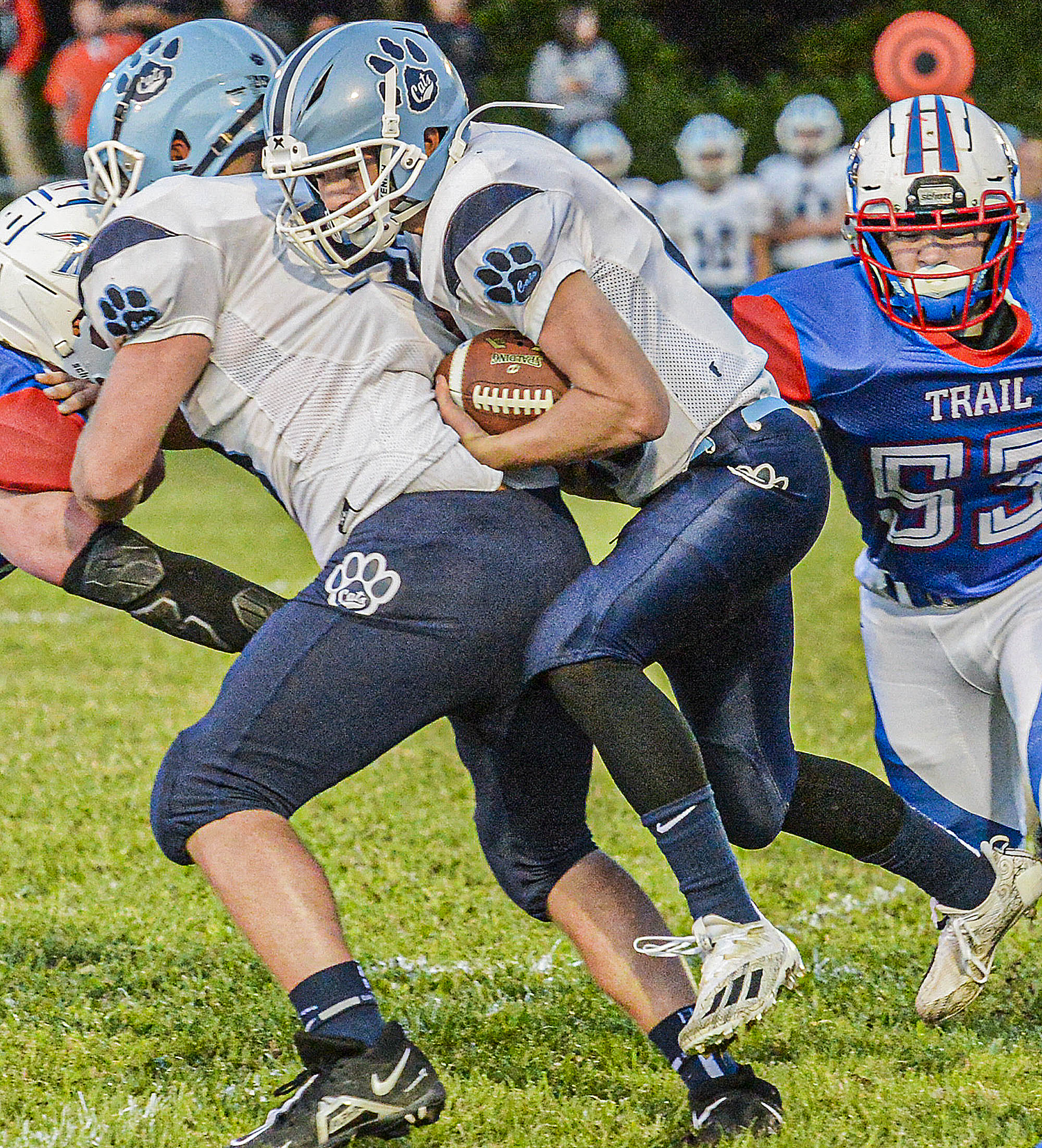 A week after scoring three times on three touches and intercepting two passes, Midland Trail’s Ayden Simms came back down to earth. He scored on three touches again but only intercepted one pass this week.