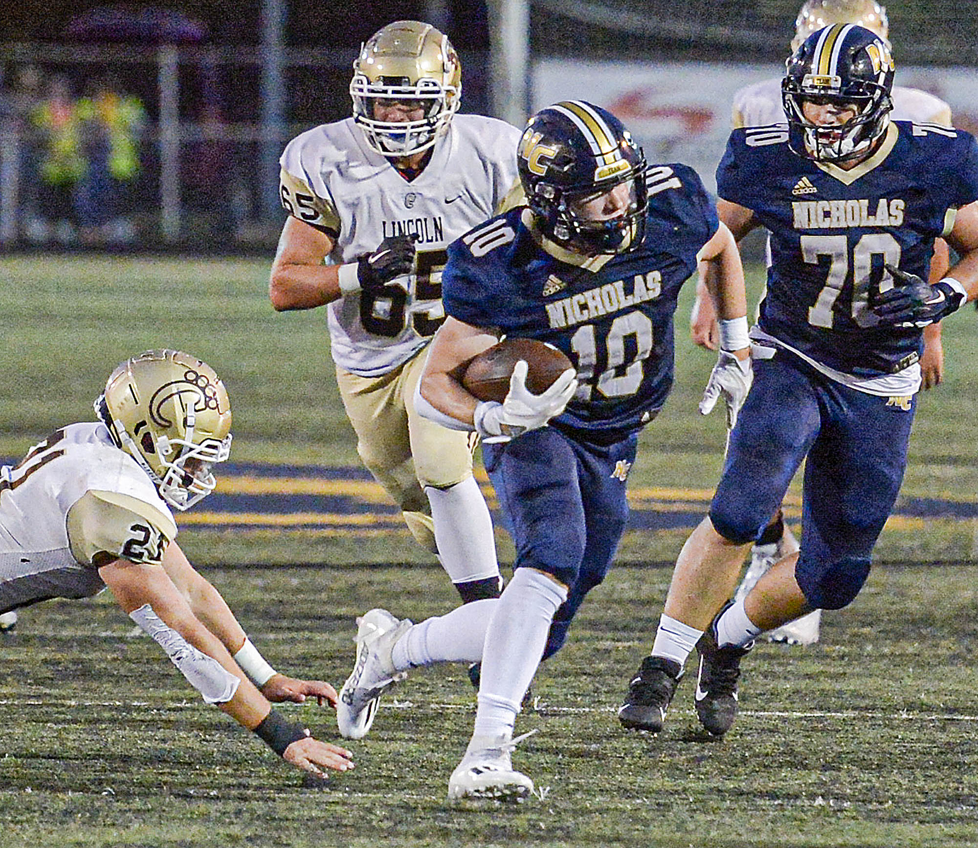 “This was a huge win. Nicholas has been playing well and I expect them to win a a lot of games this year,” Lincoln head coach Rob Hawkins said. “If we want to get in the playoffs, we have to get some bonus points somewhere. Nicholas is a very well coached team and I thought this was a great football game and a great team effort by our guys.”