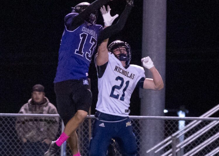 After the two teams traded punts on their following drives, Nicholas took to the air to generate a spark and it worked. The problem was the spark was generated for the Mavericks. On third-and-4, Nicholas QB Brycen Morriston rolled right and threw a ball up for grabs, one that was happily snatched by James Monroe all-stater Eli Allen.