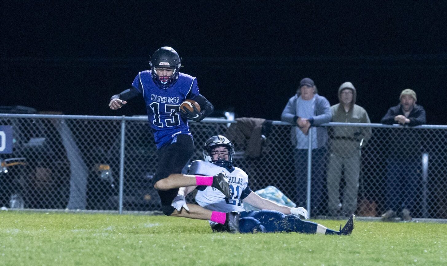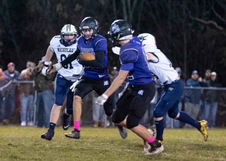 Struggling at the break, Nicholas committed to its workhorse back Kaleb Clark and found a spark. Rushing just four times for 12 yards in the first half, Clark carried the ball five times on the opening drive of the third quarter, one that ended on a failed fourth down conversion at the James Monroe 17. Still, it laid the blueprint for success as Clark carried the ball seven times on Nicholas County’s next drive, one that ended in an 8-yard touchdown pass from Morriston to Wes Hill on fourth down with 1:28 in the third quarter.