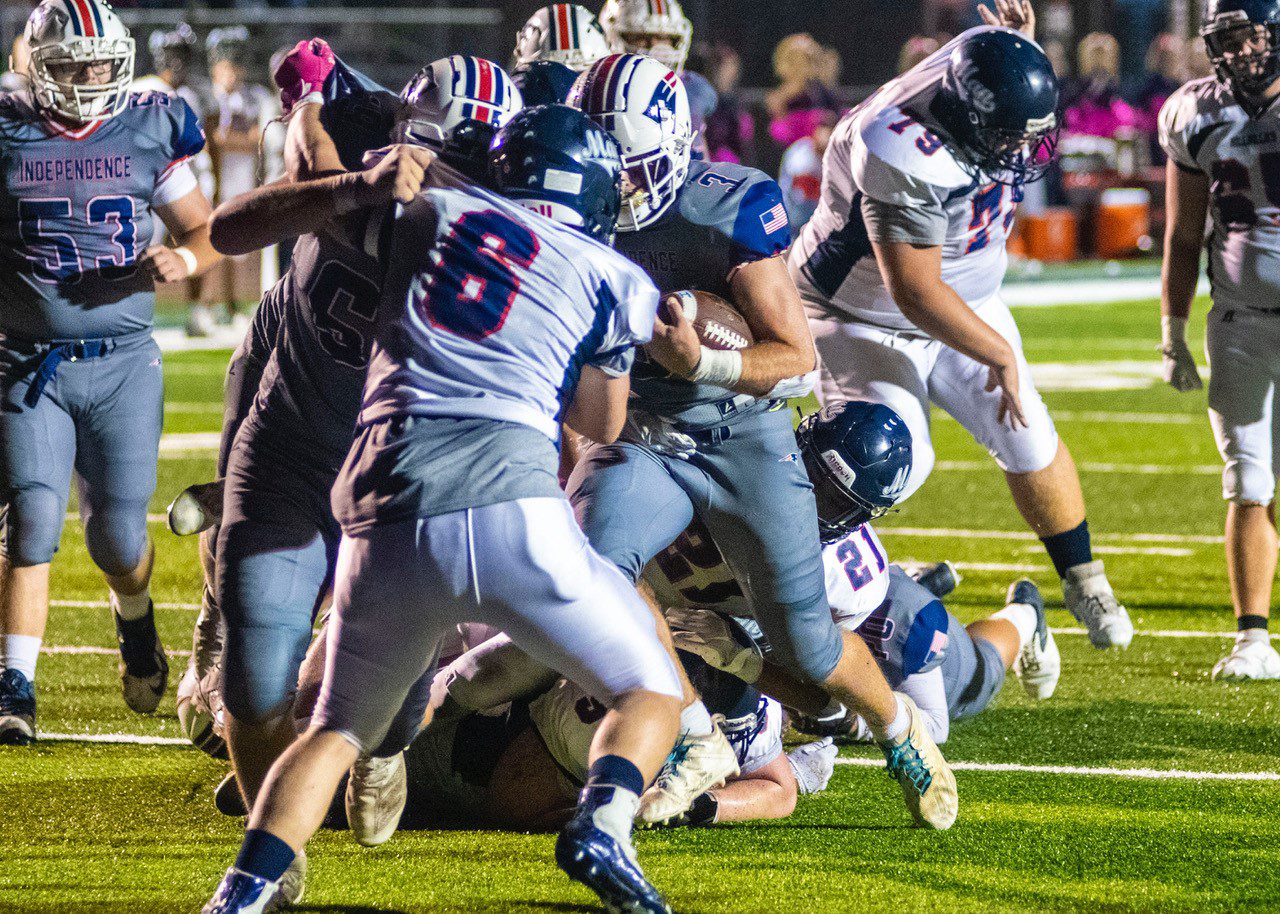 As a team, Independence rolled up 578 yards rushing with six different players scoring touchdowns. Of the Patriots’ 41 rushes on the evening, 24 went for first downs.