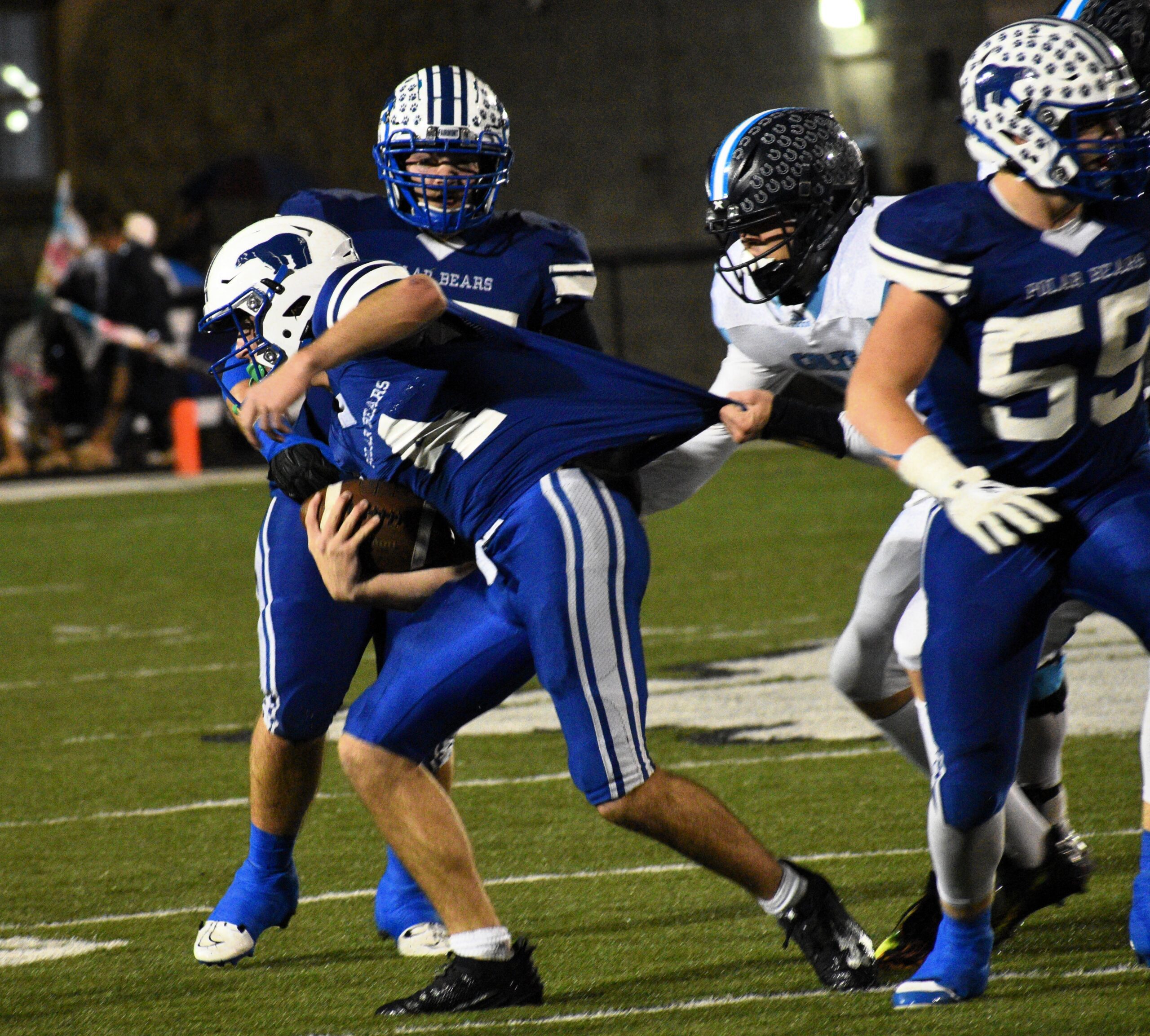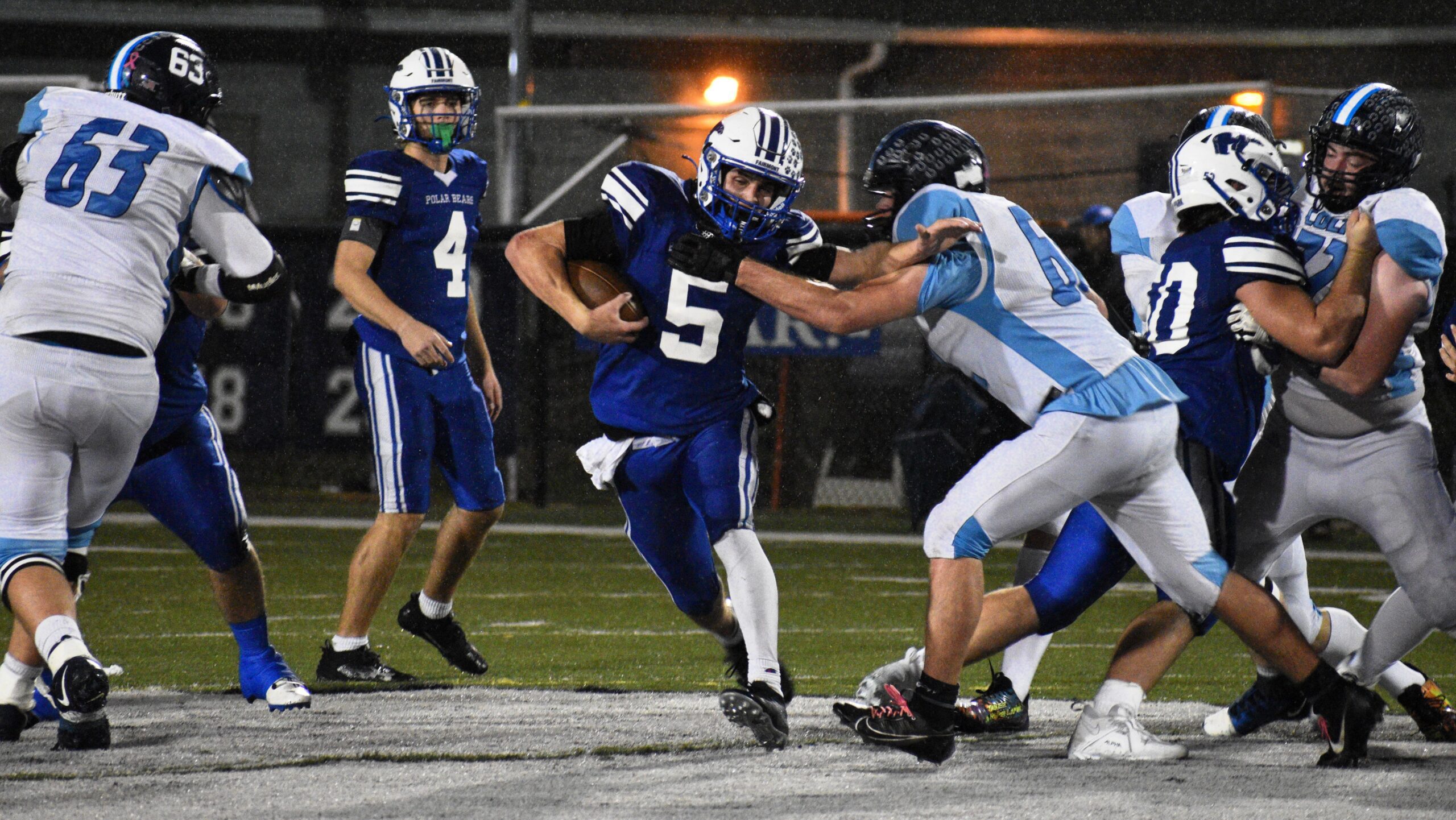In the opening round of the playoffs a week ago, the second-seeded Polar Bears got all they could handle from No. 15 Wayne, coming away with a 31-27 win. On Friday, Bartic’s squad put it all together on the rain-soaked field in the Friendly City, outgaining the Colts 383-127 in total yards and earning the shutout victory.