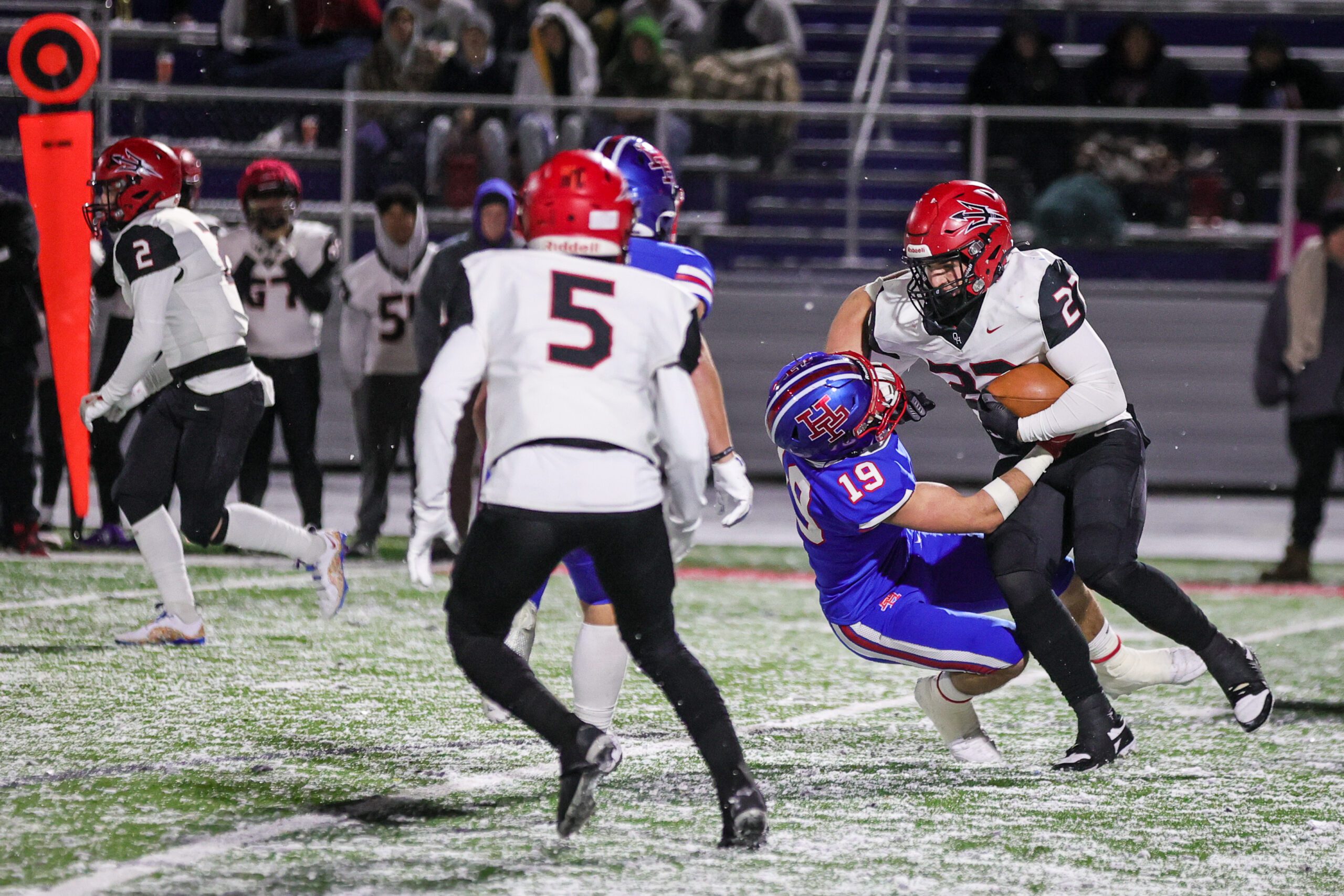 Elkview – Class AAA No. 5 Oak Hill’s historic campaign came to a close Friday night with a 56-14 quarterfinal loss to No. 4 Herbert Hoover at a snowy Husky Stadium.