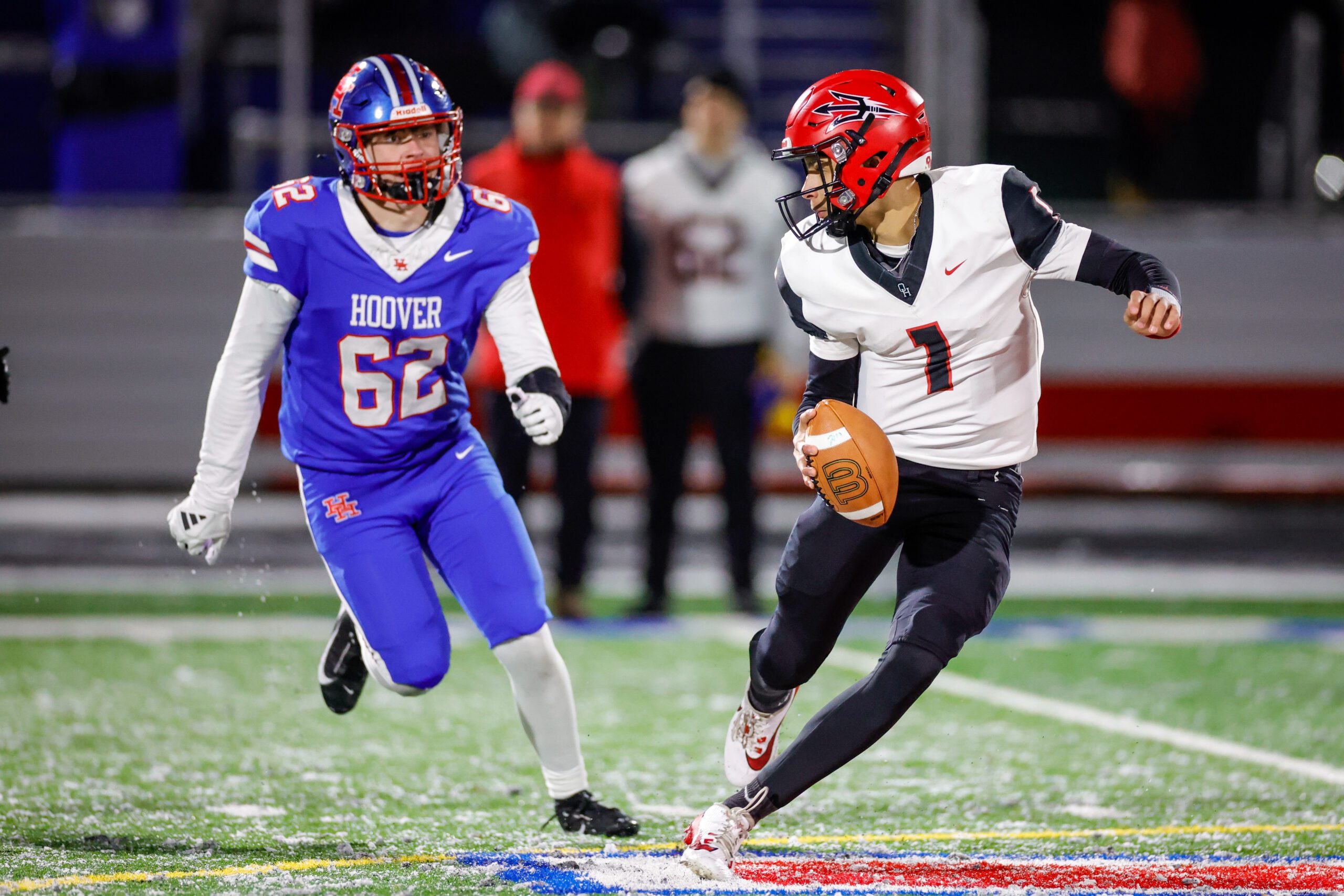 The Hoover quarterback added a rushing score in the third quarter and a passing touchdown to Talon Harrison early in the fourth quarter.